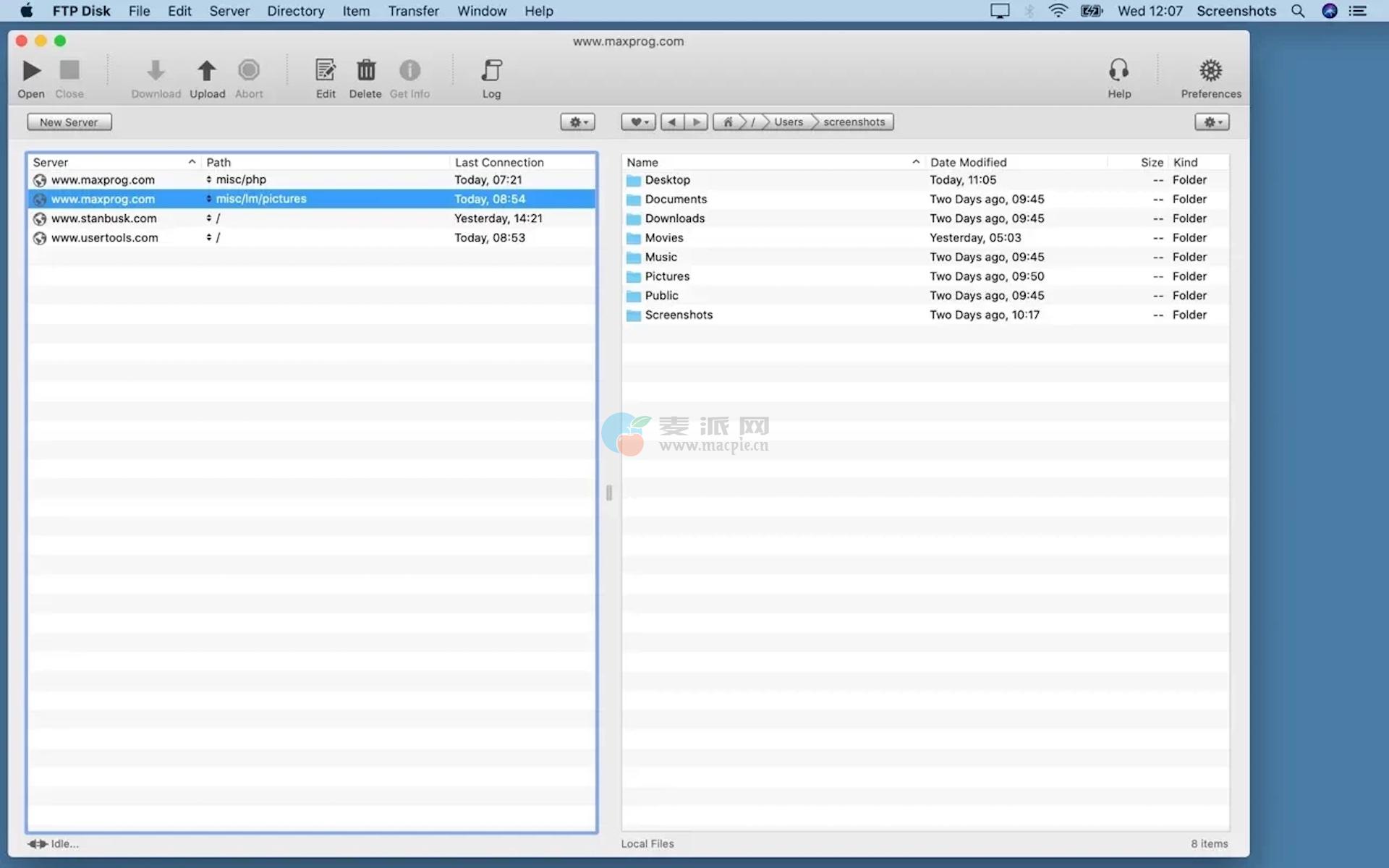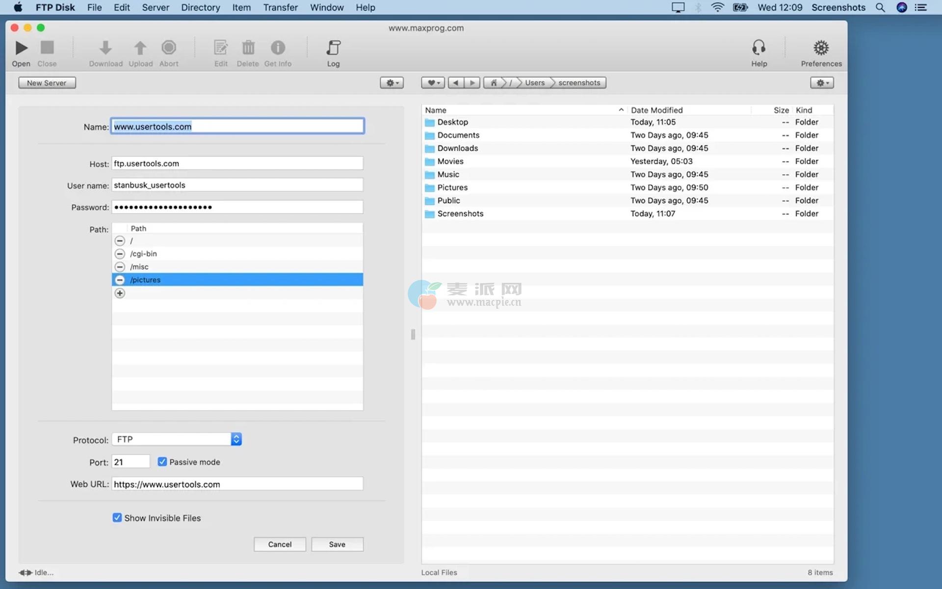 使用FTP Disk,只需将您的文件直接拖到服务器列表中,就可以沿着选定的路径下载它们。您可以用不同的方式创建任意多的服务器,并同时开始多个下载。当然,你可以像往常一样登录服务器,浏览目录,创建文件和文件夹,下载和上传文件,使用内置编辑器更改文本文件,查看图像和更改访问权限。