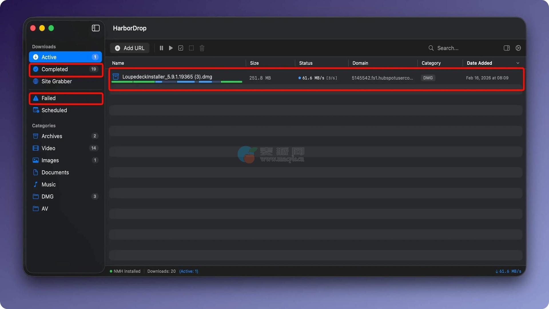HarborDrop的主要优势之一是其多段下载加速,可以将一个文件分成多个部分,并同时下载,以获得更好的速度。开发者声称,在支持的场景下,这可以提供高达6倍的下载速度。这使得该应用程序对经常在Mac上下载大文件、媒体资产、软件包或在线视频资源的用户特别有用。