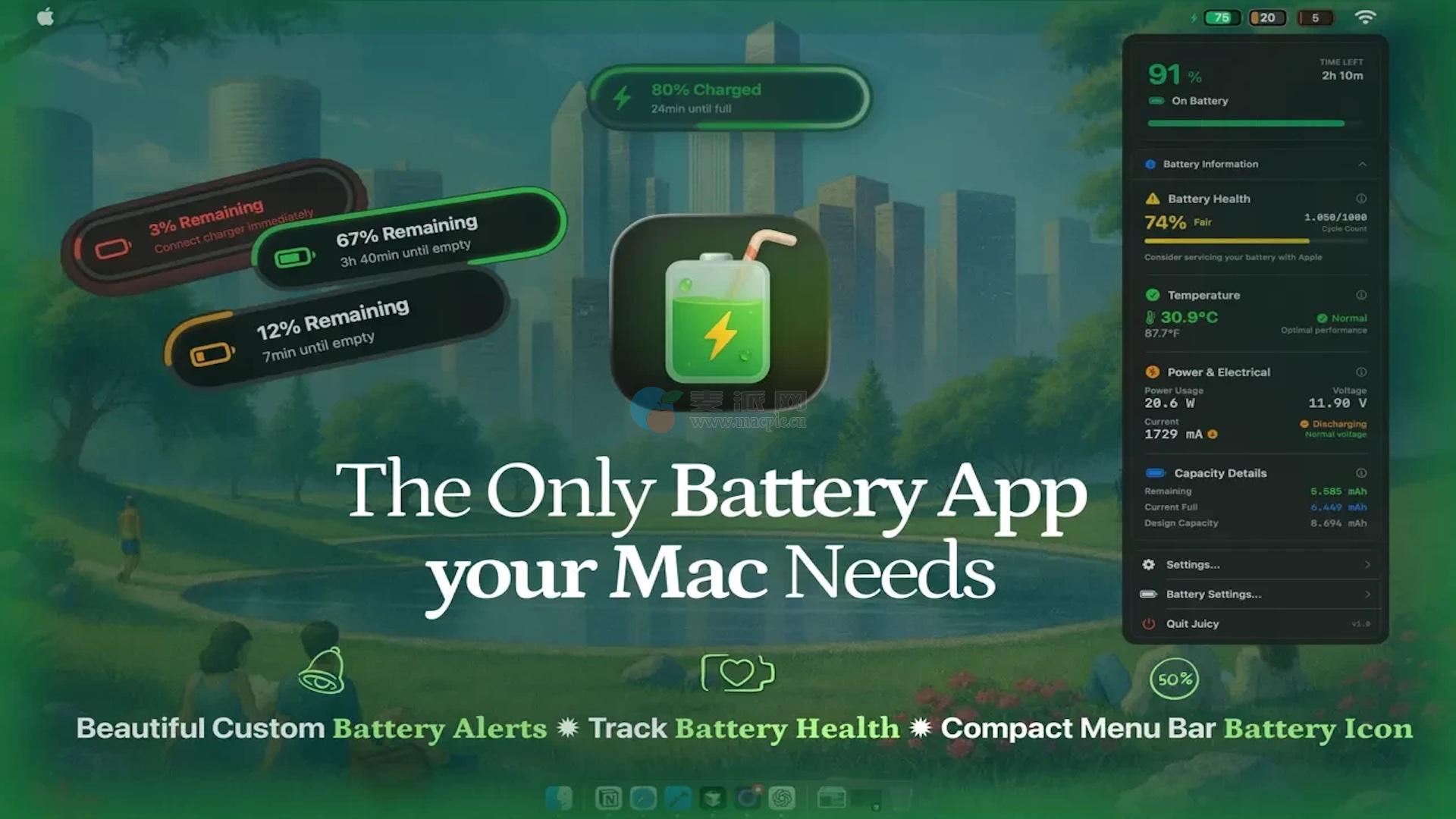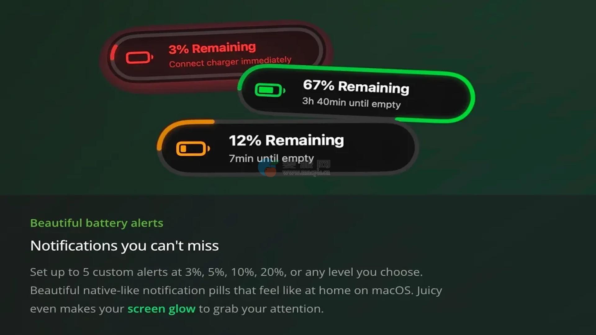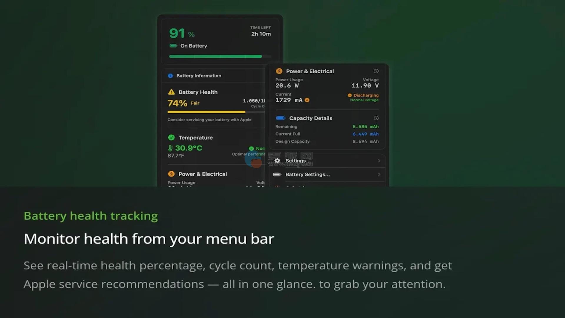 -可定制的警告颜色和屏幕,与菜单栏和实时电池状态图标完美集成