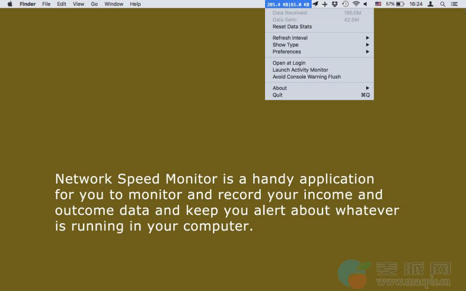 Network Speed Monitor 是一款轻量级的网络流量监控工具,它会集成在你的Mac系统桌面任务栏中,实时显示网络的上传和下载速度,作为一款工具条软件他足够小巧有效节省工具栏空间,并且他很直观在你使用Mac的过程中随时可以监测到网速情况对于一些希望了解自己网速的人很有用。
