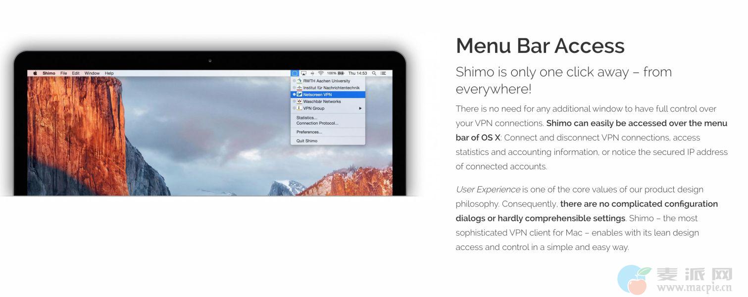 Shimo能够使您的安全网络连接周围的一切都自动化:当您更改网络位置时,自动建立连接,在某些事件上执行applesUNK,或者得到有关这些事件的通知。