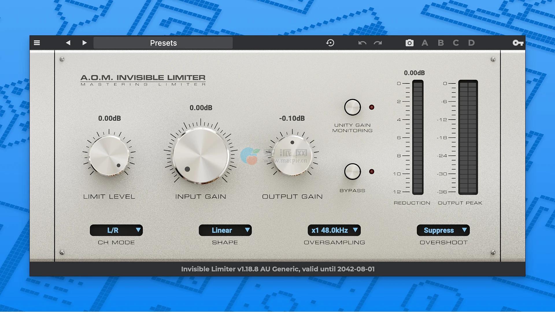 A.O.M. Factory提供专业音频插件。我们的目标是为音频和音乐制作提供简单有效的齿轮…A.O.M. Invisible Limiter是一个透明的前瞻砖墙限制器,具有时间参数起音/释音的自动调谐功能。算法隐形限幅器减少了原始和处理过的素材之间的差异…隐形限幅器G2–它的数据,继承了隐形限幅器,但有许多改进,如:减少驱动器,软膝,通信通道,手动攻击/释放,寒颤,和滤波电路部分等。