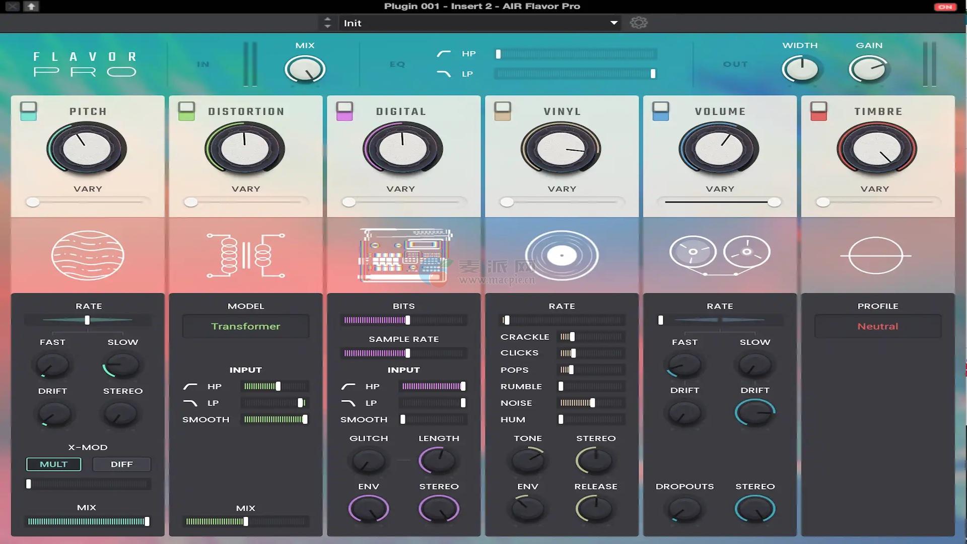 Flavor Pro配料的核心是6个强大的效果模块,提供无限可能性的身临其境的高保真控制。添加即时效果,如音高抖动,磁带饱和,磁带丢失,失真,漂移到12/8位采样,乙烯隆隆声,嗡嗡声,爆裂声和裂纹仿真。无论您的音乐风格如何,Flavor Pro强大的多效果布局都允许以快速创作的方式对您的作品进行即时复古魔术和操纵。