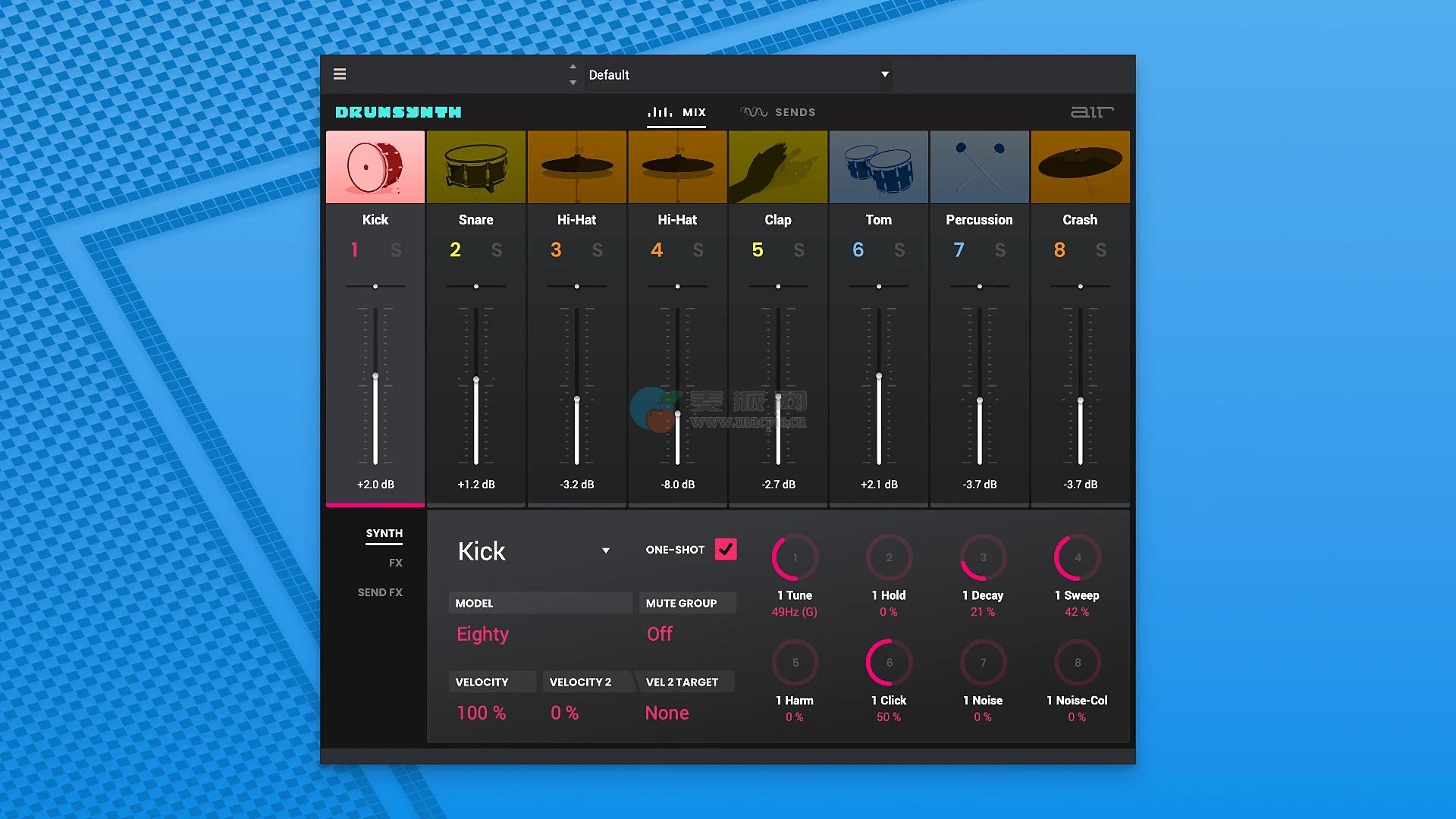 用强大的工具发展你的想法。DrumSynth是一个可选的多种效果,如大小,音调调整,均衡器,压缩,混响和延迟。将您独特的声音保存在自定义预设中,以便快速访问。