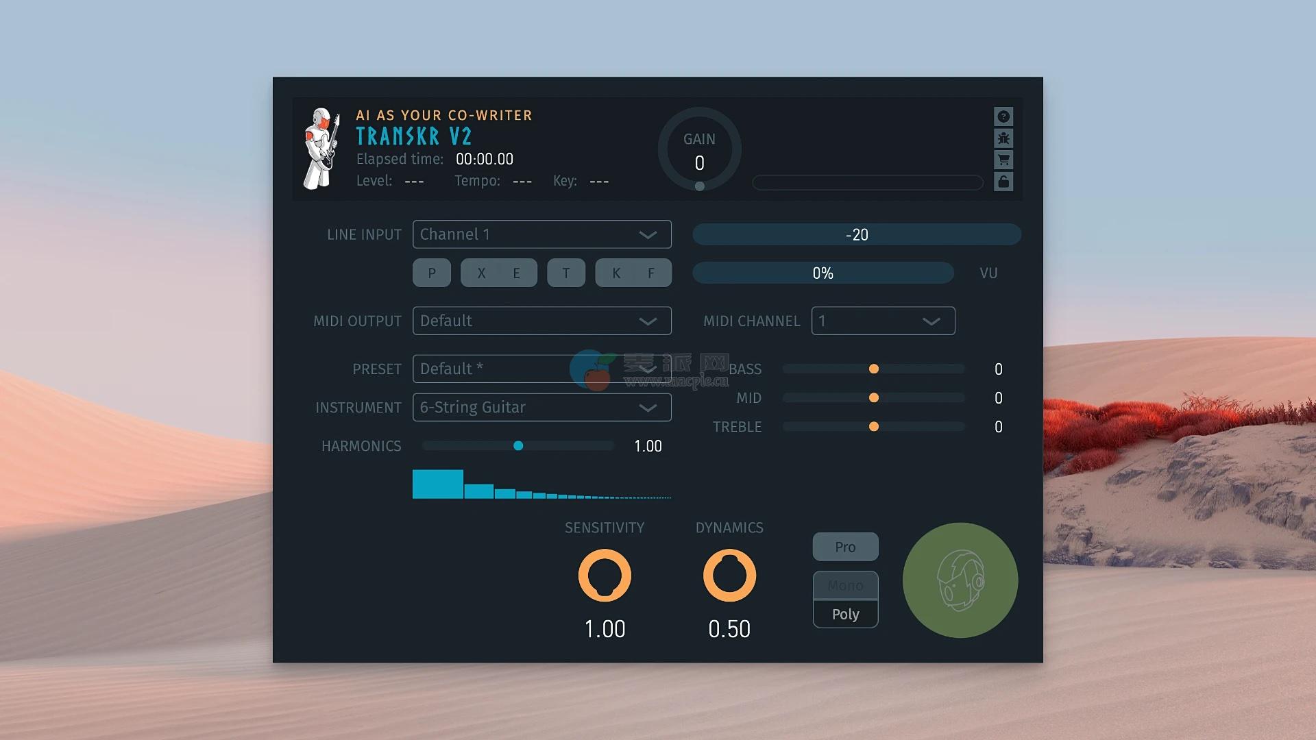Algoriffix Transcr V2是一个音频MIDI版本的插件,你可以使用你的吉他,贝斯,或语音作为一个实时的MIDI控制器。