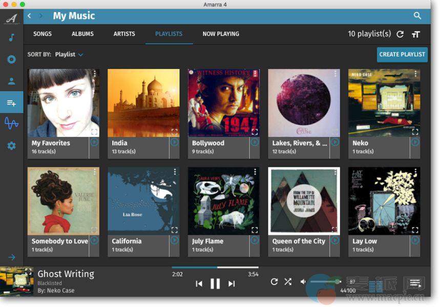 - 创建自己的混合曲目和采样率的播放列表,并通过专用播放列表视图访问它们