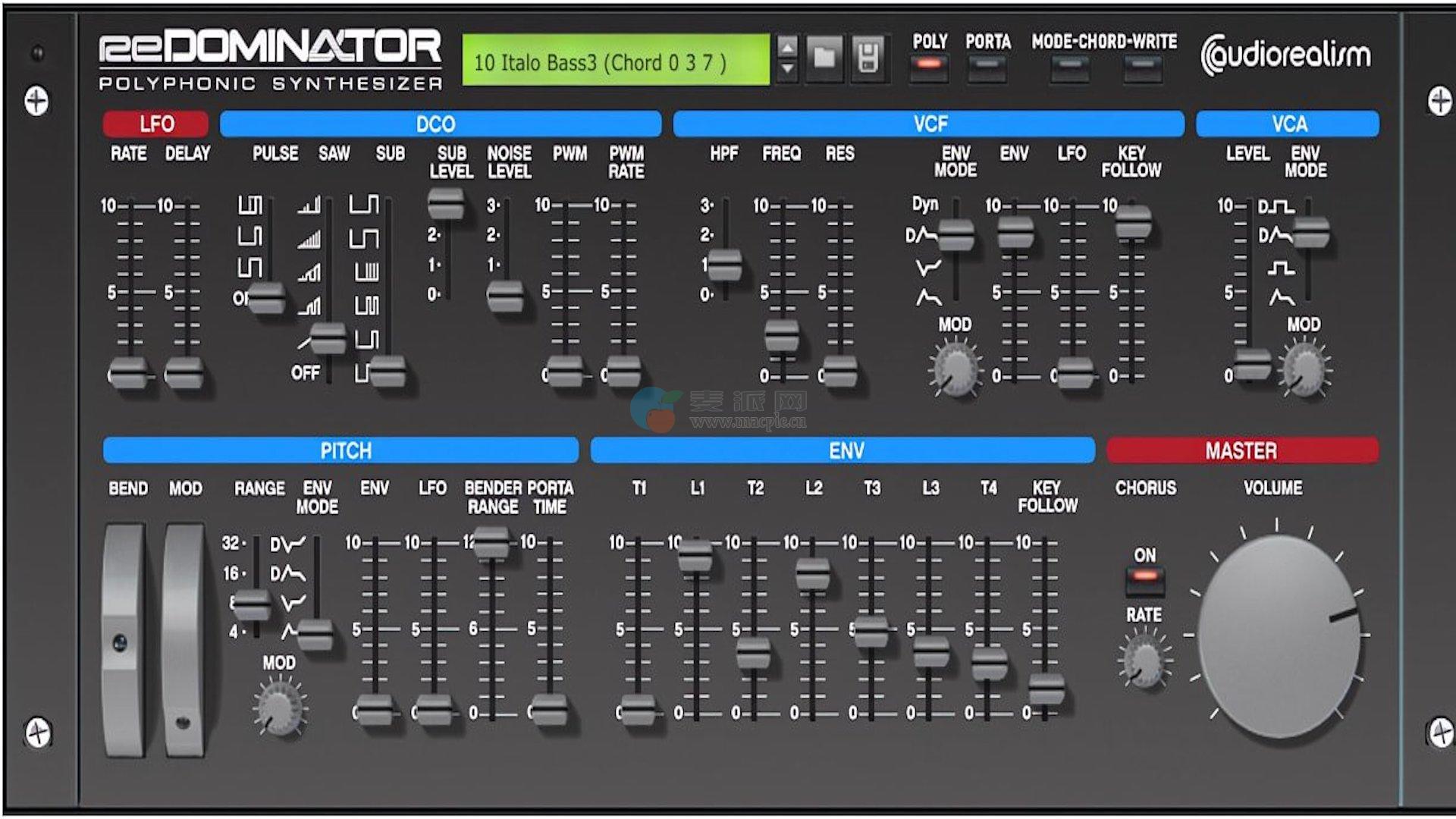 ReDominator是对经典胡佛合成器的模仿,这是1986年基于复音DCO(数字控制振荡器)的合成器。AJ-1/2在90年代早期的电子音乐和锐舞现场变得流行,特别是通过经典的胡佛声音(ReDominator精确地模仿)。但是除了这些小众的声音之外,还有一个多功能的合成器,可以合成低音、垫音、主音、管风琴和许多其他的声音,等待被发现!