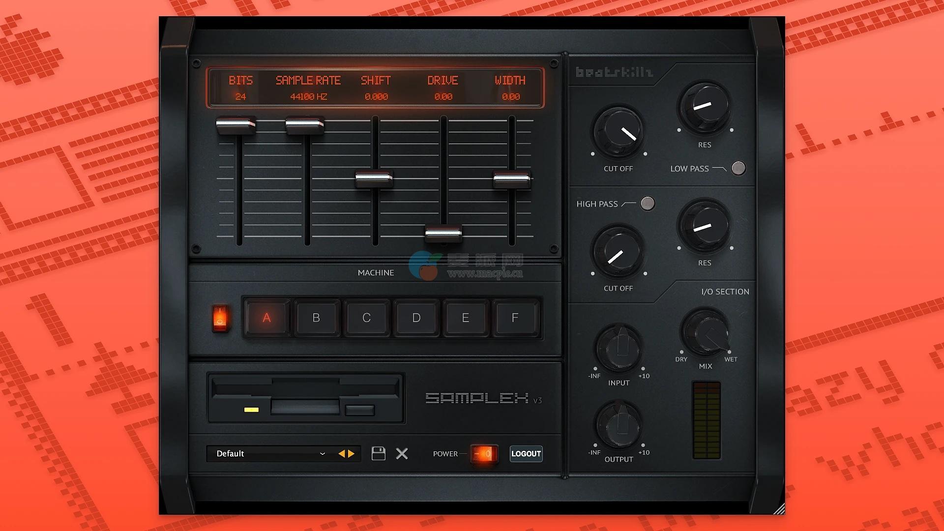Samplex3的主要概念:该插件模拟了三个经典的老式采样器(era 12位和16位),添加了诸如混叠、颗粒噪声和有限带宽等特征伪像,从而为现代音轨提供了旧嘻哈和室内录音的真实声音。