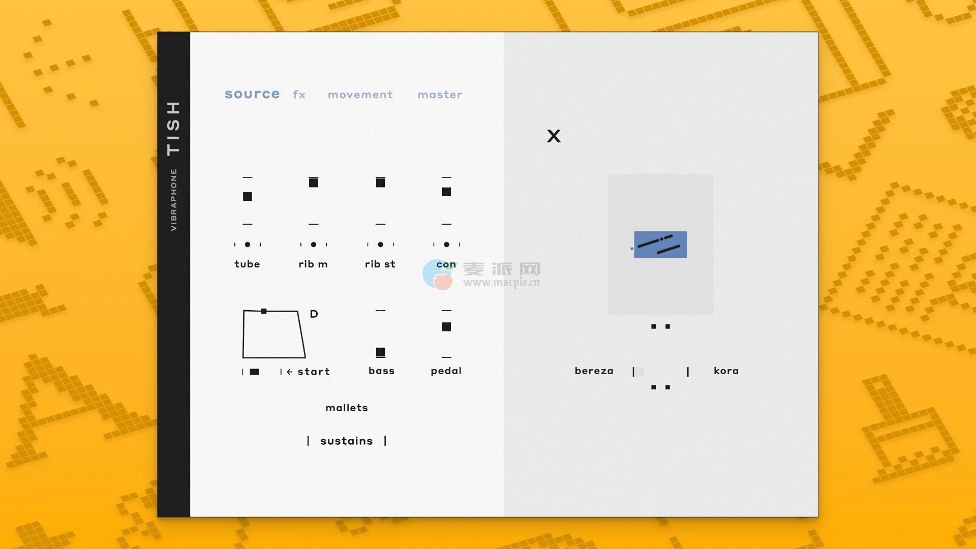 引入5种预设,X-silider用于混合4层(原始电颤琴和声音设计)。