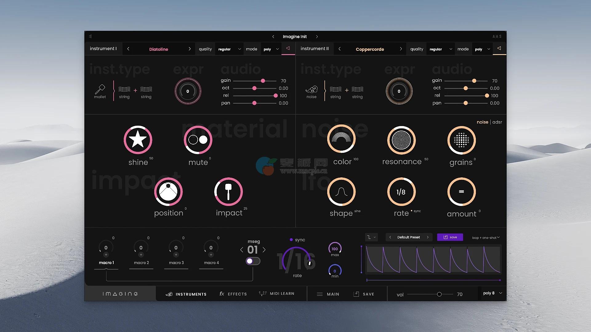 Imagine是一个合成器,灵感来自真实乐器的声音,但你会超越它们通常的极限。