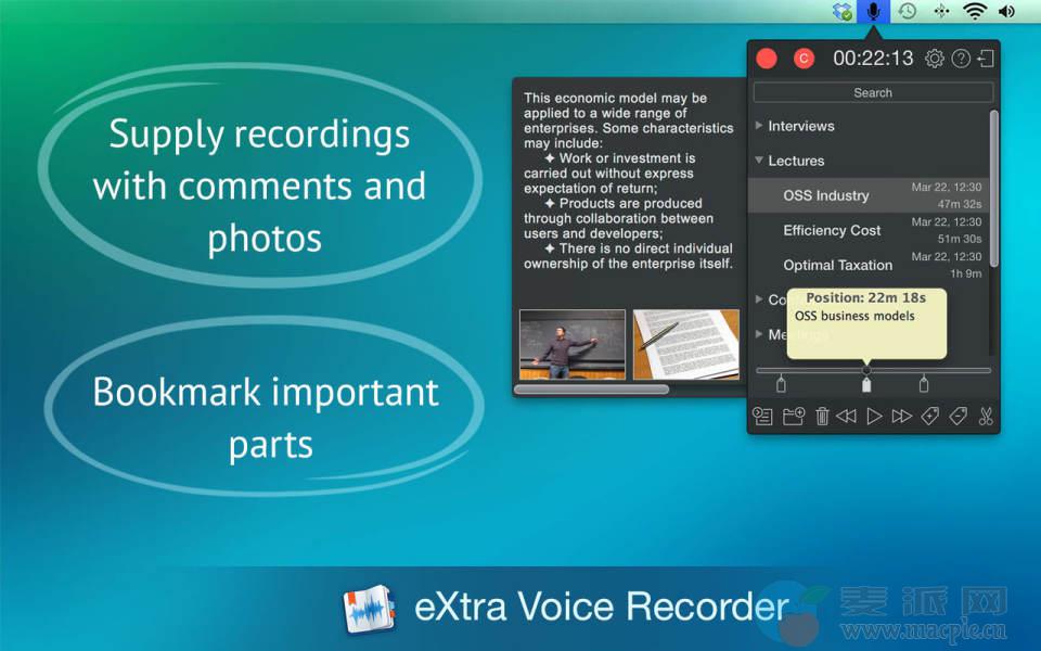 您可以将注释和照片添加到每个录音中,为重要的部分添加书签,便于导航,继续录制并将其直接保存到云中,实现通用可访问性。内置的搜索工具将帮助您快速找到必要的录音或其片段,而Split功能将有助于在收藏中分割录音。