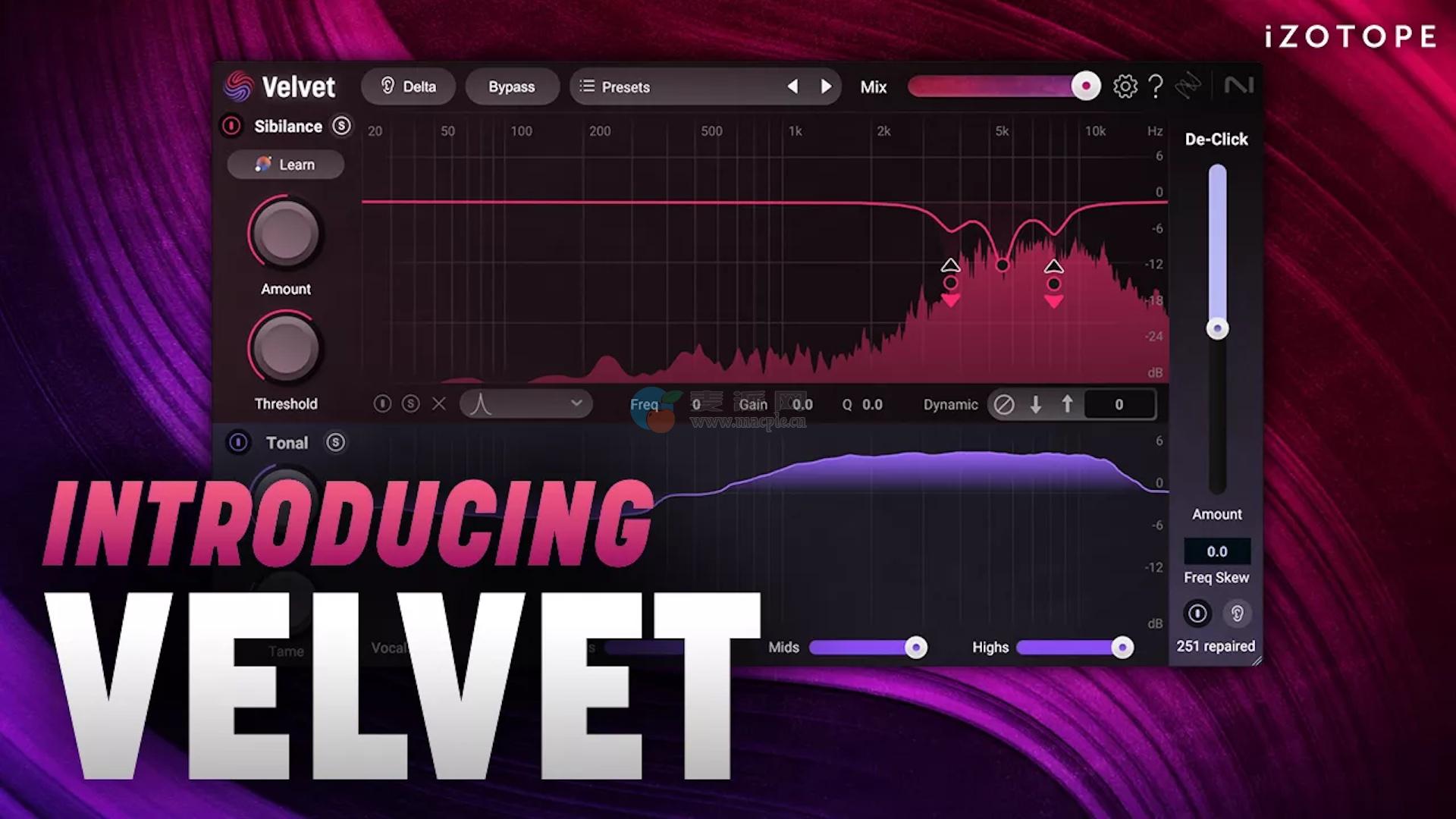 *Velvet v1。0.0:引入了咝音学习,8个目标配置文件,6波段动态均衡器。