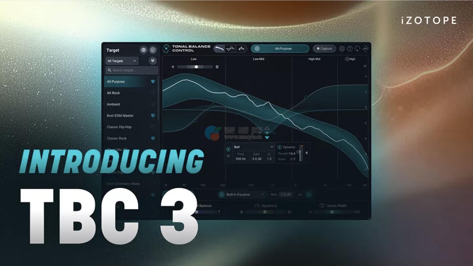 iZotope发布了Tonal Balance Control 3,这是一个强大的参考插件,可以显示您的歌曲与排行榜音乐的对比。通过新的音频采集流程,让任何歌曲成为您的指南,该流程可与Spotify、YouTube或任何其他在线或离线音频源等流媒体服务配合使用。通过深入的视觉背景、智能臭氧和中子集成,以及对人声平衡、动态和立体声宽度的更好了解,获得对每一个混音和母带的信心。