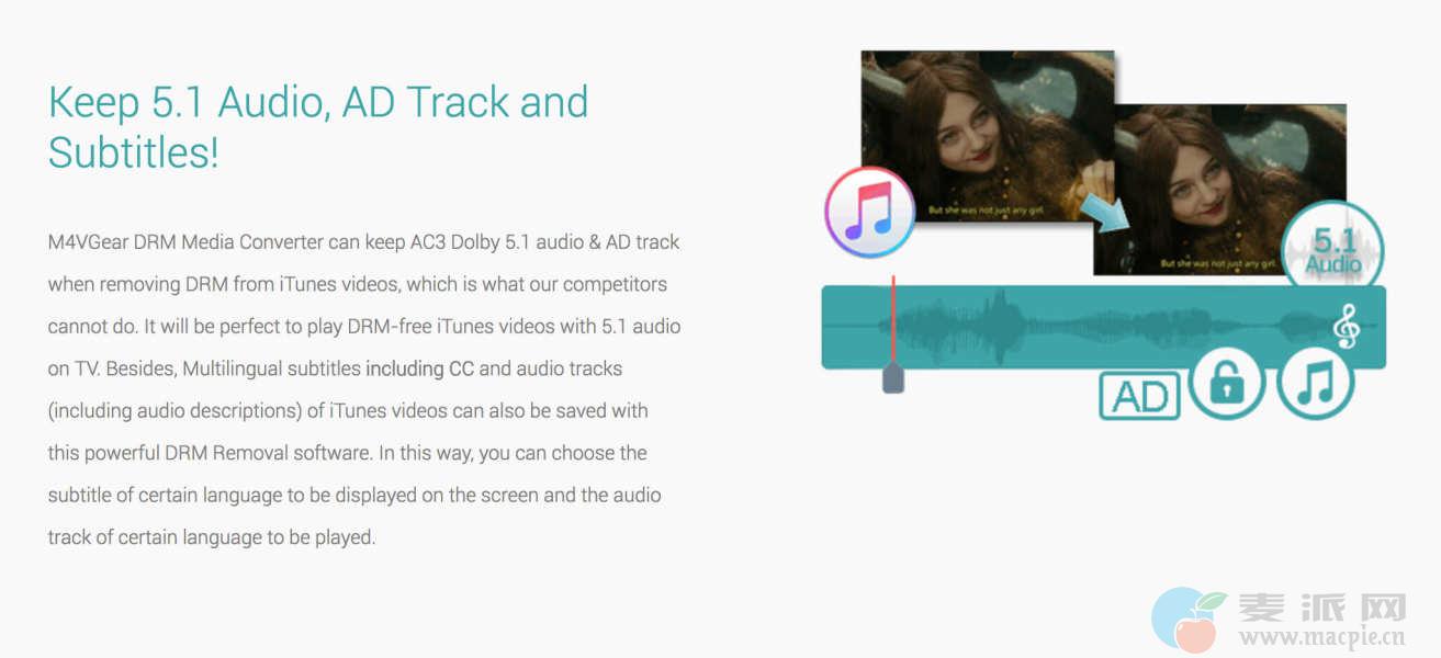 M4VGear能够在转换DRM保护的iTunes视频之后100%保持原有的视频质量。 此外, 这个强大的iTunes视频转换器还能保持原视频的字幕和所有的音轨。 这样,你就能轻松观地在任意播放器或者移动设备上观赏到无DRM保护的全高清iTunes电影,电视节目以及音乐视频。