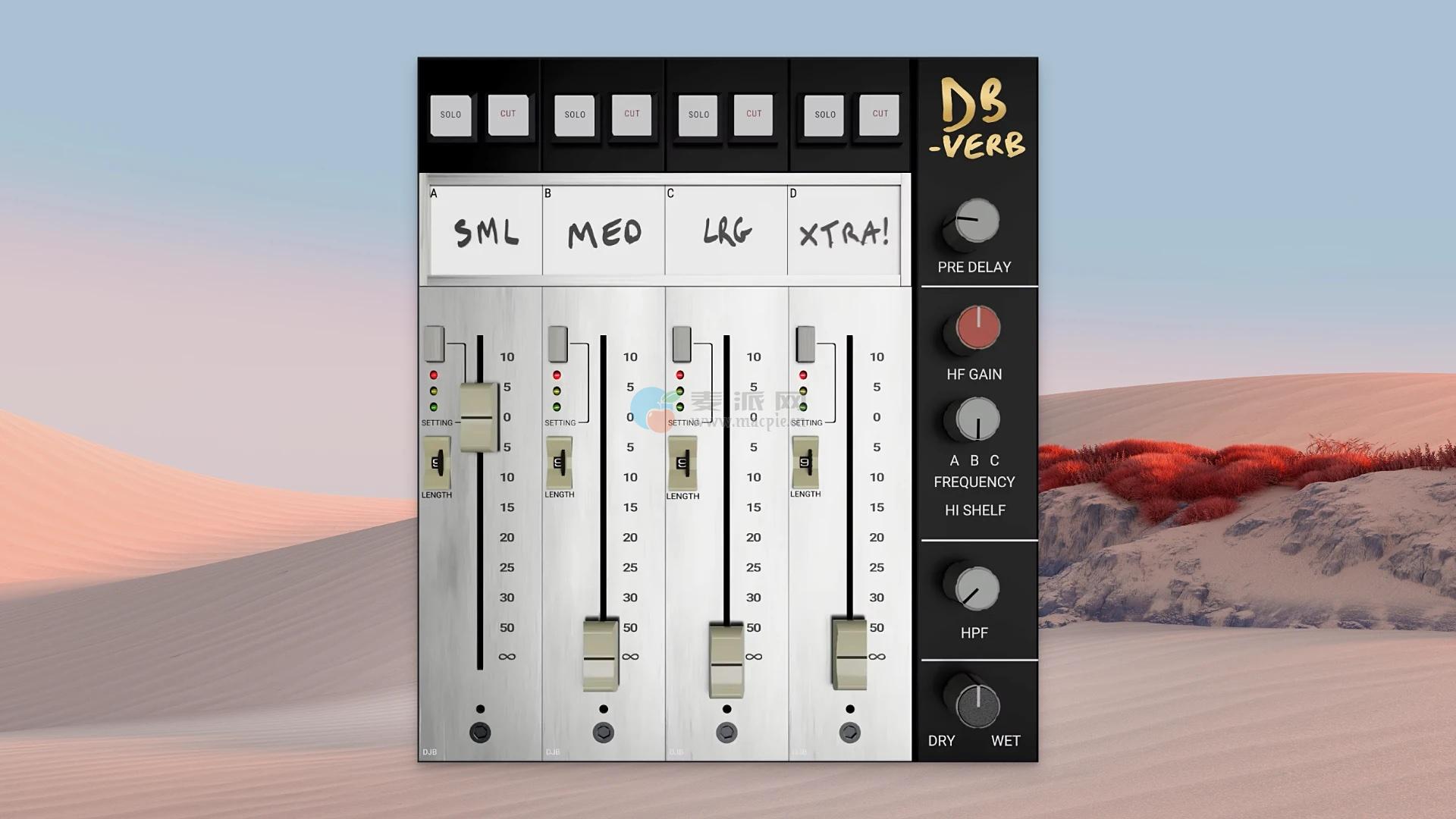 DB Verb是与制作人David conjunction Bender在中反向开发的,针对鼓处理进行了优化,但也是人声、吉他和合成器的模式。该插件包括四个平行的混响系统,每个系统有三个预设,允许你创建复杂的纹理。由高质量的过滤器(高通,三种感染的高货架),预延迟和再抵押资金管理提供动力,以创造门控效应。适合摇滚、流行和金属风格的音乐制作人和声音设计师。