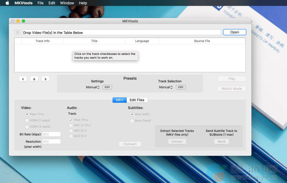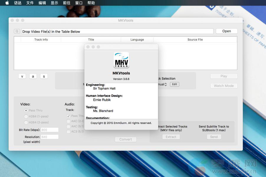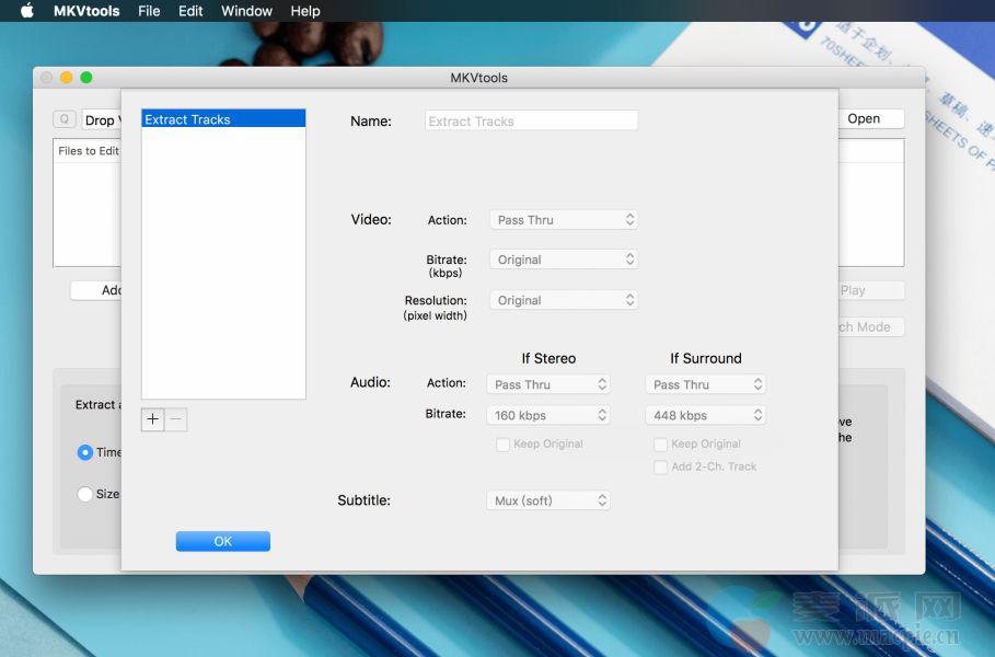 MKVtools for mac的前身称为MoKgVm2DVD,它是一套可以把MKV 影片格式转换成可以播放的AVI 或MP4 格式,MKVtools for mac可以直观地选择所需的视频、 音频和/或副标题跟踪到 procces,以验证所做的选择,使用视频预览的能力。