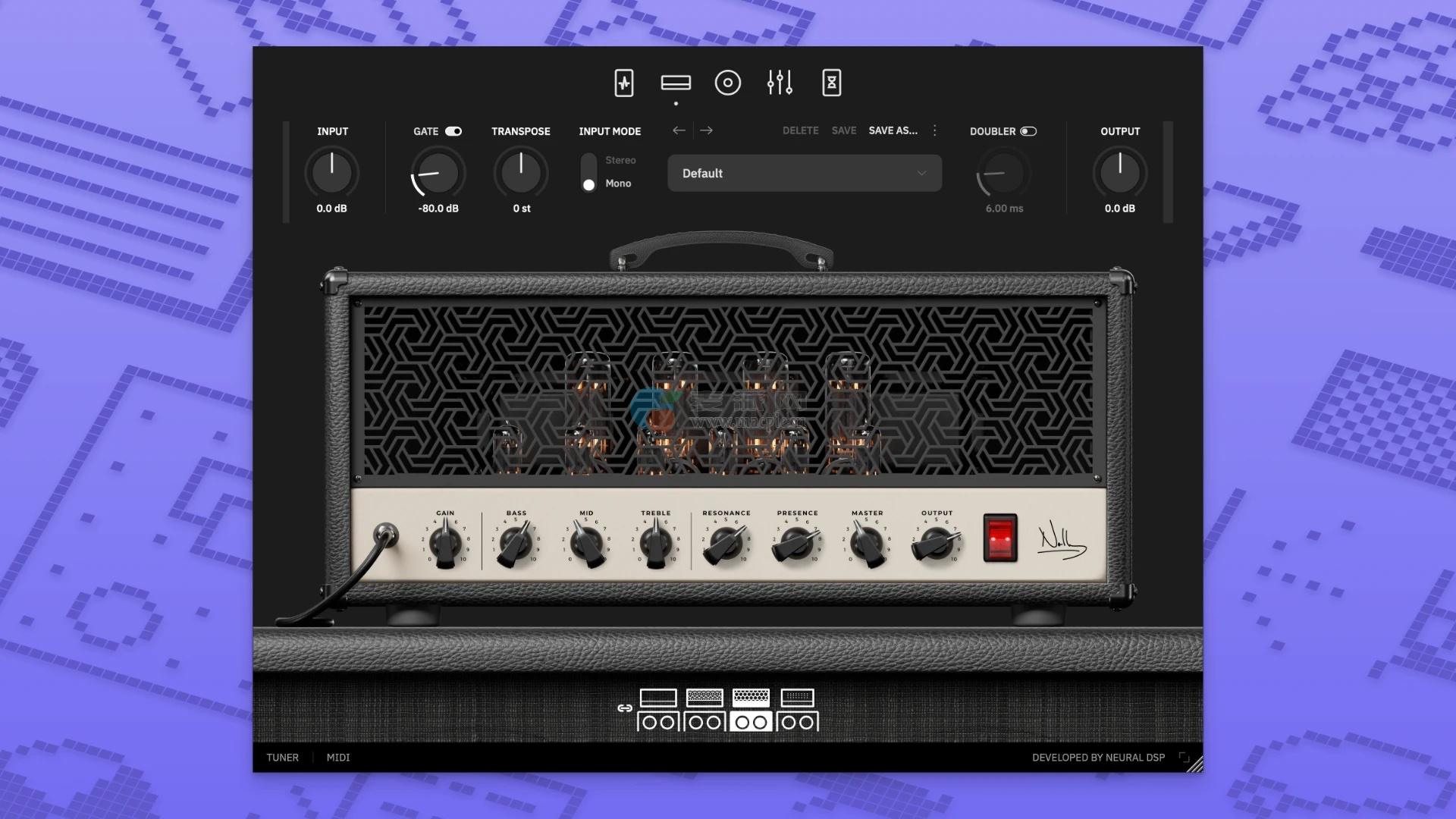 该插件有四个基于诺利个人模型创建的现代放大器。它们涵盖了从纯音到重音的所有声音。