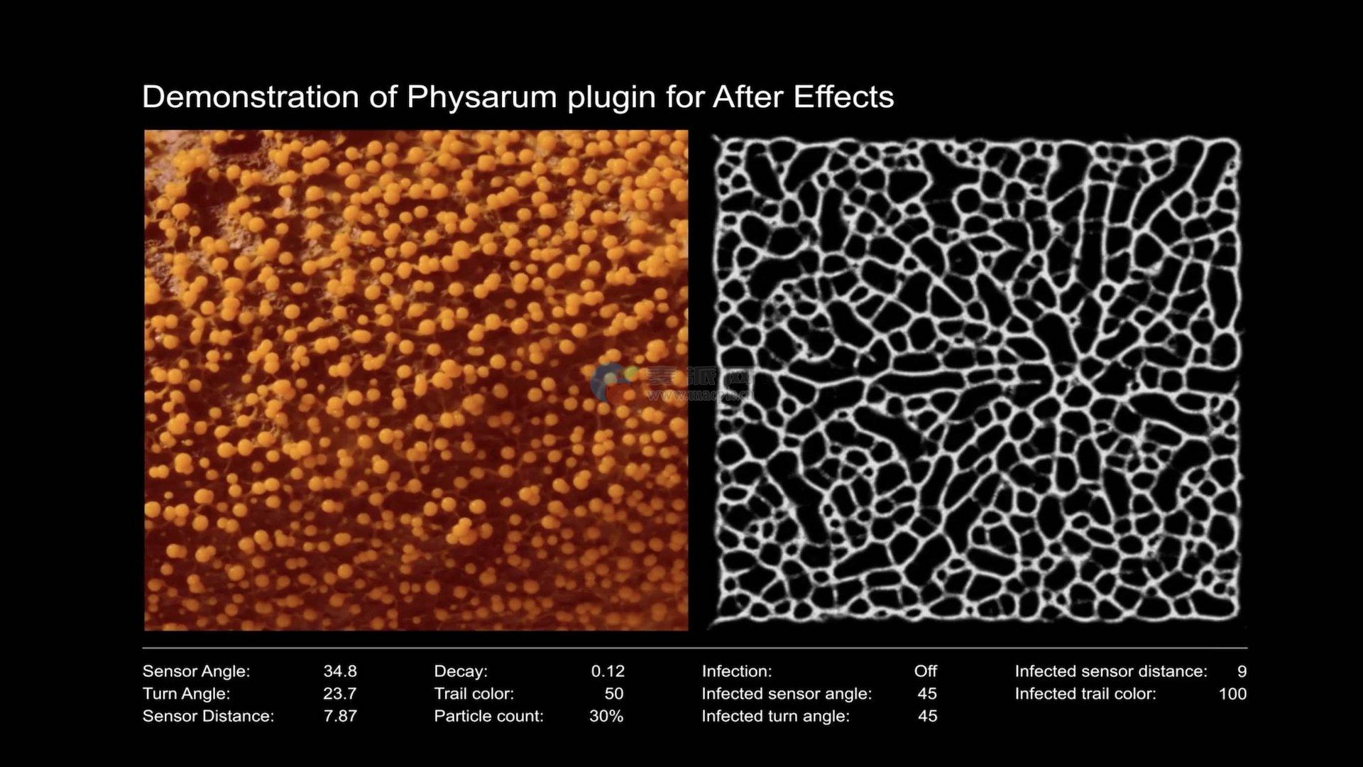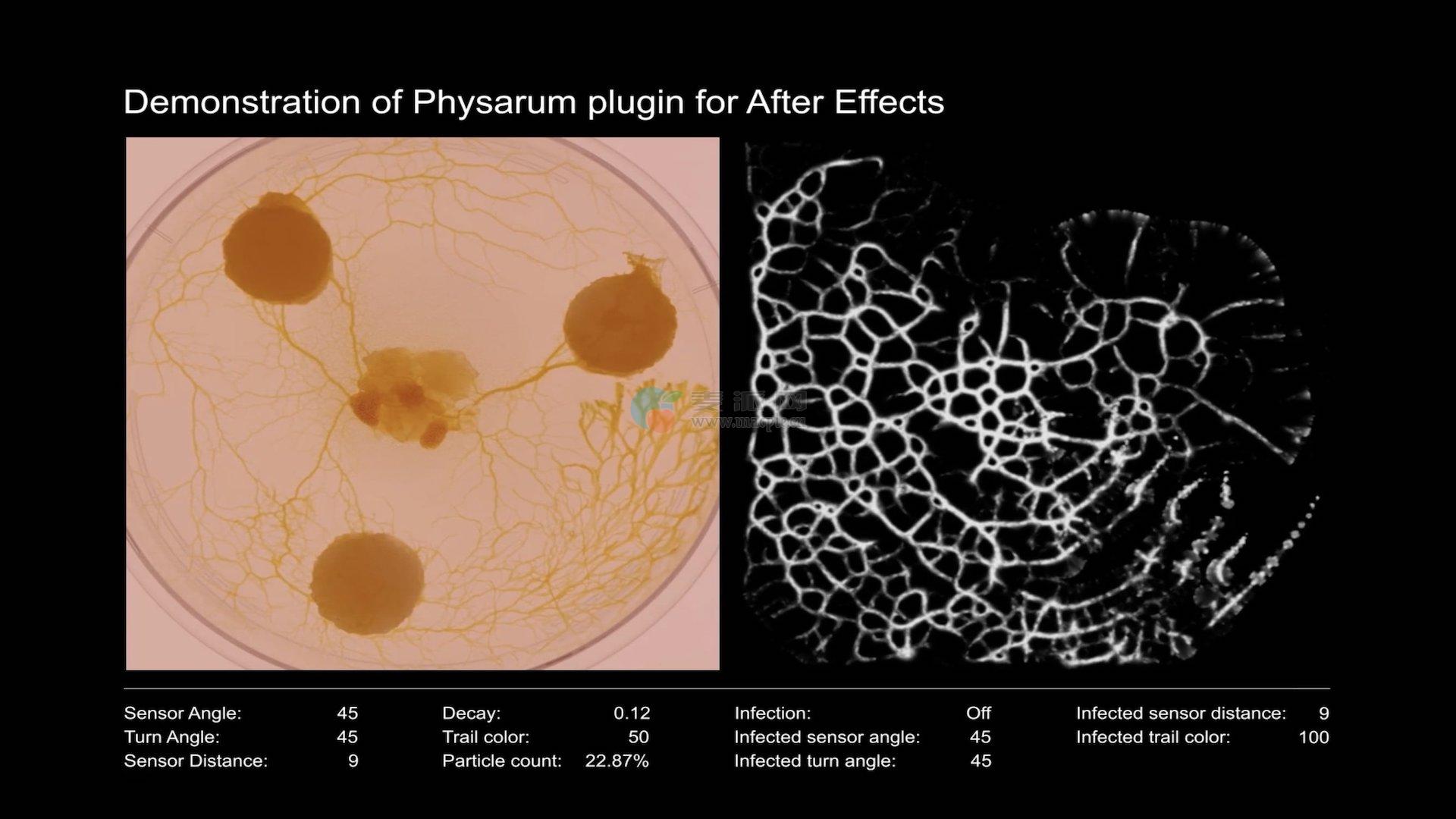 Physarum是一个模拟有机生长的插件。模仿模型与自然界中发现的模型非常相似。建模参数的微小变化会产生全新的结果。Physarum可以与其他层交互,包括图形、动画和活动帧。绒泡菌给你很多实验和研究的机会。