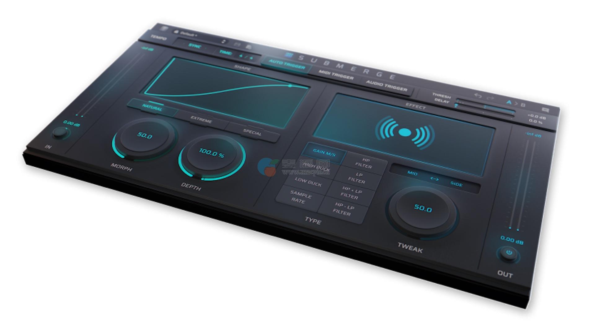 凭借三种不同的触发模式、八种效果类型、可定制的控制曲线等,Submerge是一款极其灵活的声音设计工具,为经典制作技术增添了一丝现代魔力。