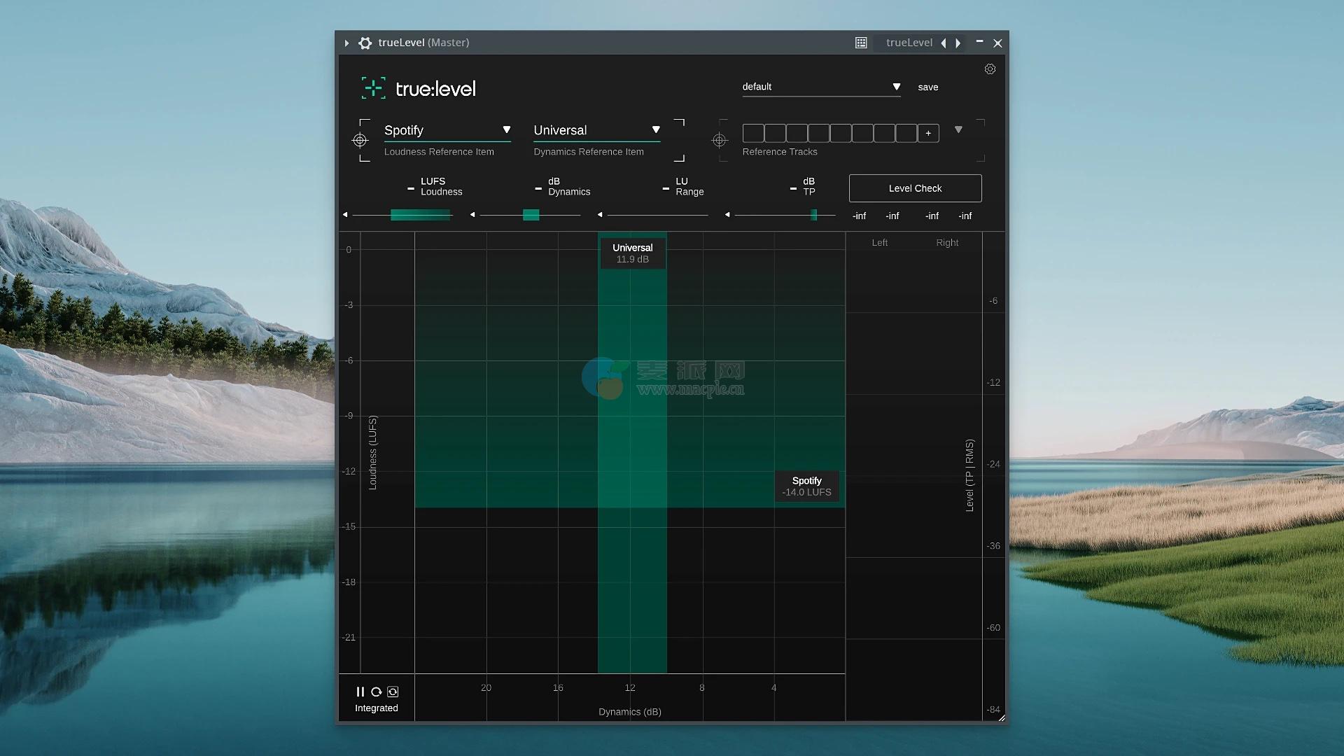 • true:level是一个体积和动态的插件,提供了我们的实时关系的可视化。显示响度(LUFS:综合、短期、即时)和真实峰值(dB)、动态(dB,基于峰值响度比)和真实峰值(dBTP)。支持平台(Spotify、Apple Music)和流派的预装参考,以及多达8首用户参考曲目。电平检查触点提供混音调整文本。适合音乐制作人和音响工程师准备发行的曲目。