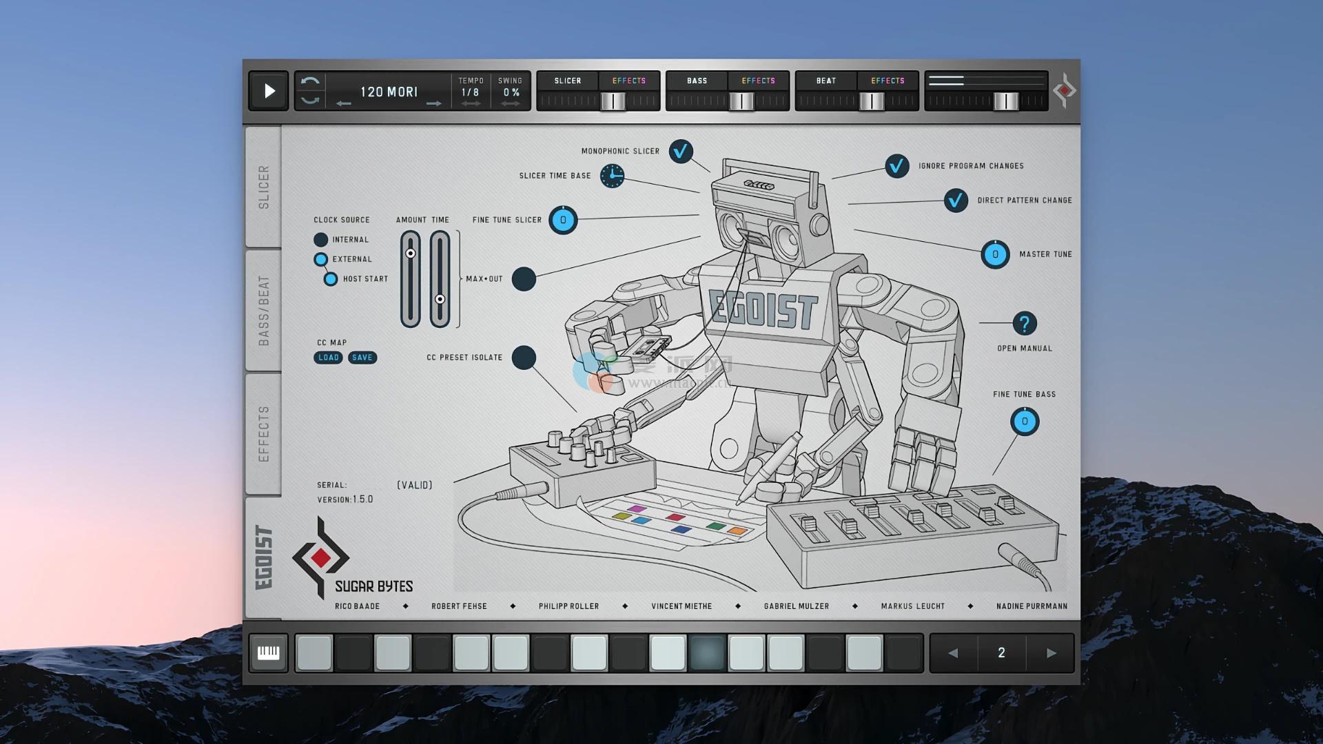 工厂图书馆打包了760MB的声音材料,从原声节拍、钢琴和打击乐循环、合成器、人声到FX,因此您可以在使用外部音频之前使用几个小时。通过“加载样本”,您可以导入格式。wav,。aiff和mp3。使用样本或完整歌曲作为声源。瞬间凹槽。板载低音线、鼓机和多效音序器使Egoist成为工作室和路上的完美轨道素描工具。你很快就会爱上它的独特功能和概念。