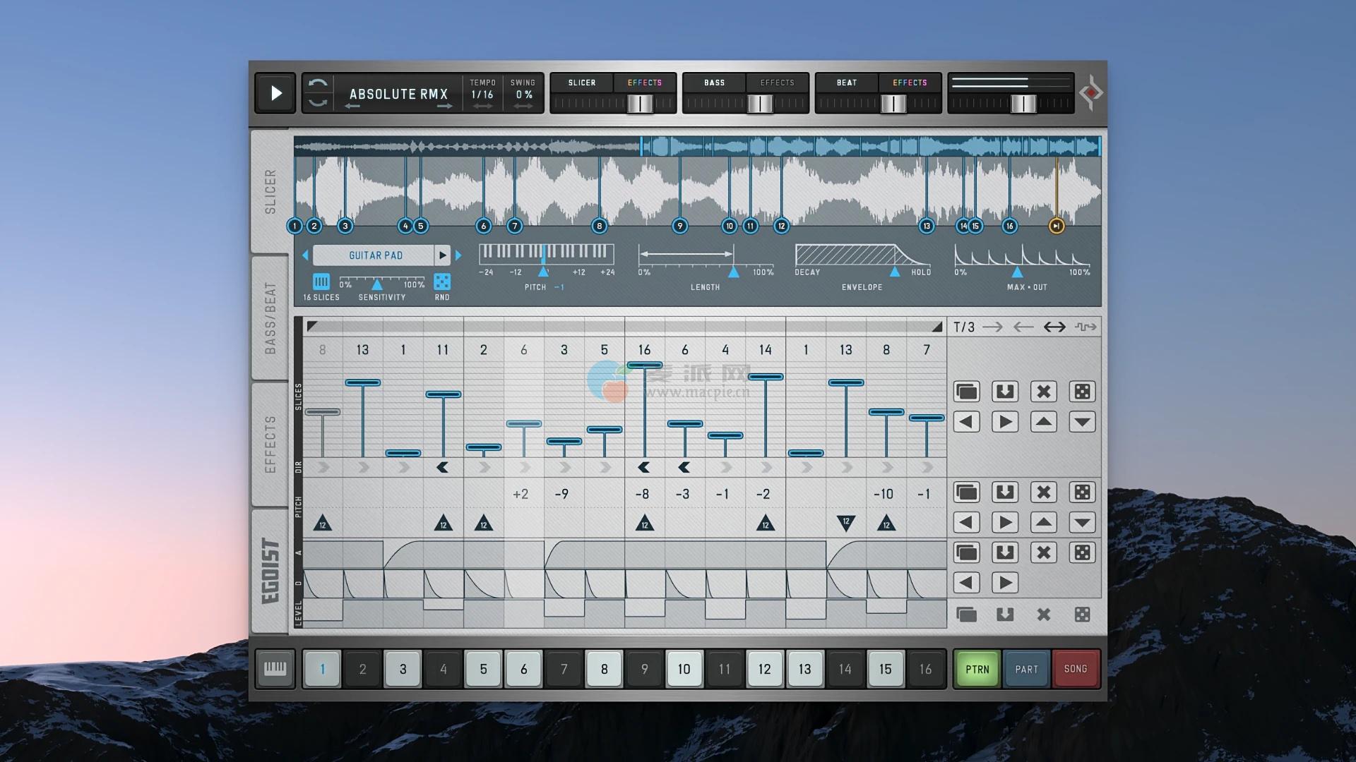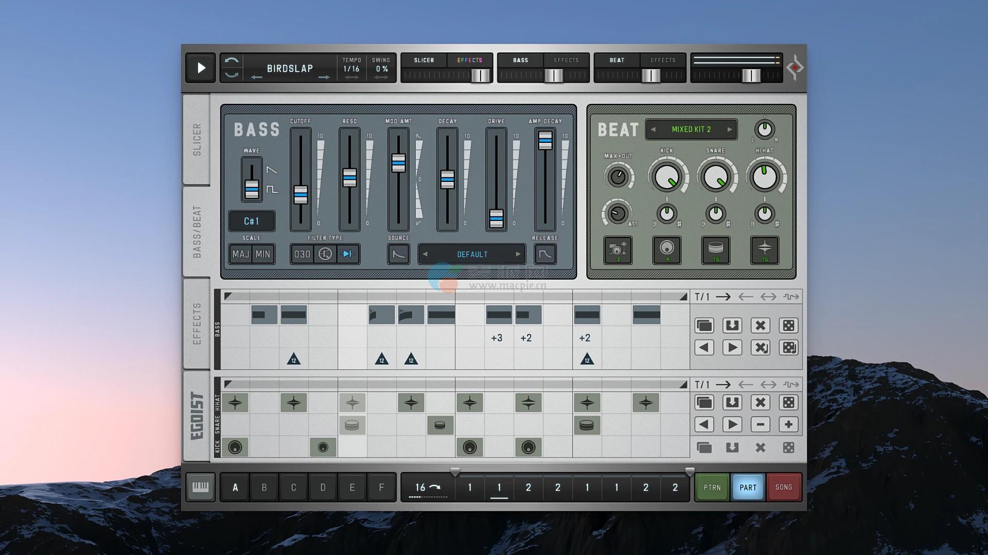 切片器、低音、节拍和效果音序器