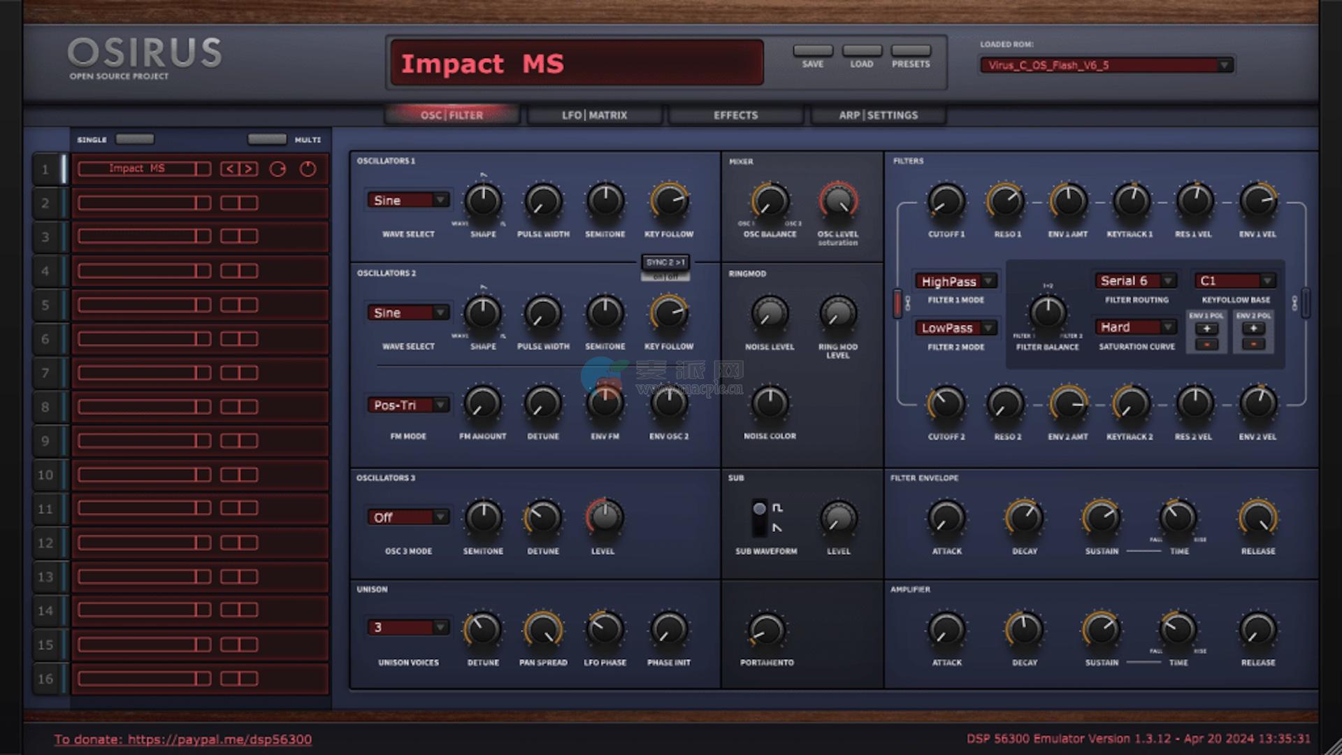 Osirus是Access Virus B/C的VST仿真,代码移植后的功能与使用DSP56300仿真器的硬件完全相同。