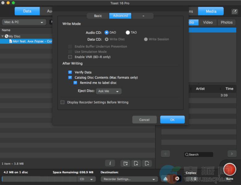 轻松创建CD,DVD和蓝光光盘的副本*。复制Mac OS,Toast和其他光盘映像格式 – 无论原始光盘是什么,Toast都可以复制它*。您也可以将光盘复制到数字文件,以便在您喜欢的设备上播放。