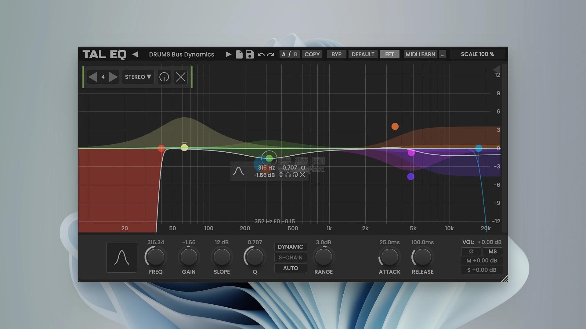 TAL-EQ是一款多功能的图形均衡器,专为出色的声音、快速的工作流程和轻松的可用性而设计。它具有动态处理和多种立体声编辑模式。频谱视图实时显示频率内容和所有变化。