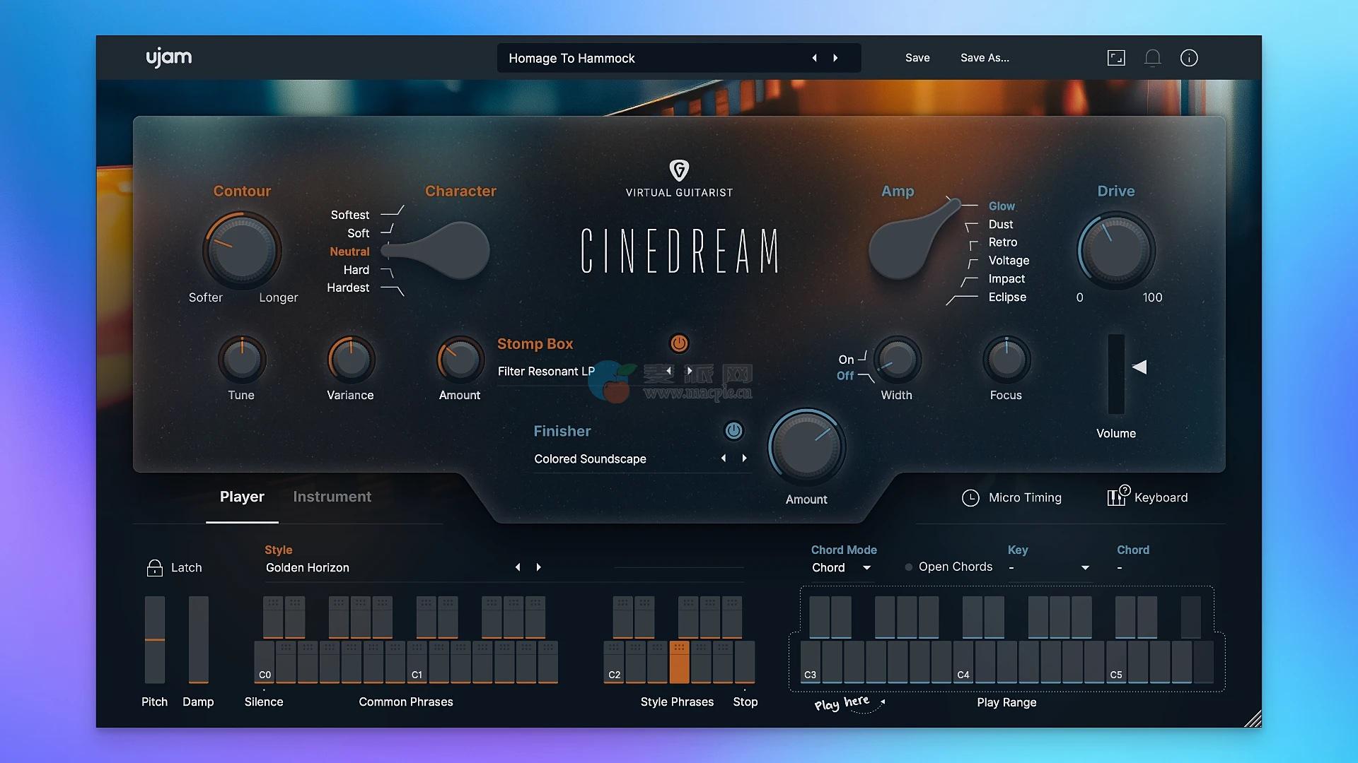 CINEDREAM是一个虚拟的吉他质感乐器,超越了普通的吉他。它帮助您轻松地在国际上创建声音、柔和的背景和情感部分。