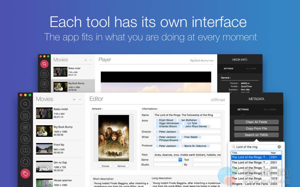 VideoToolbox是一套为新手和专业人士设置的MP4和M4V编辑工具。您不再需要启动Quicktime X或Final Cut Pro。