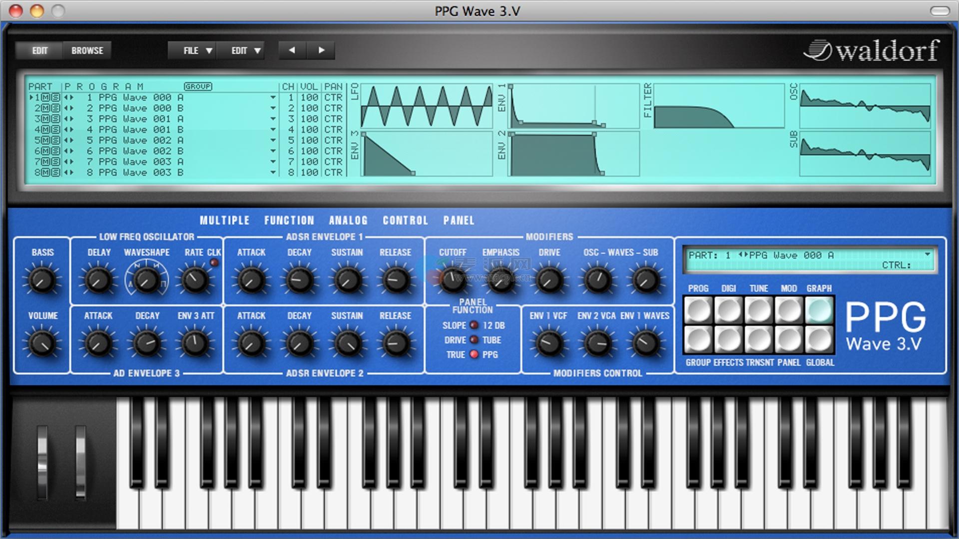 Waldorf PPG Wave 3.V是传奇的PPG波合成器的化身,毫无疑问,它被认为是80年代最受尊敬的高端合成器之一。由Wolfgang Palm开发的这种乐器出现在无数的唱片中,它激励了整整一代的制作人、作曲家和听众。当时,你可以选择花钱买车还是买PPG,新PPG Wave 3.V渲染这种惊人的声波特性非常实惠,每个VST或AU的主机都可以舒适地使用。