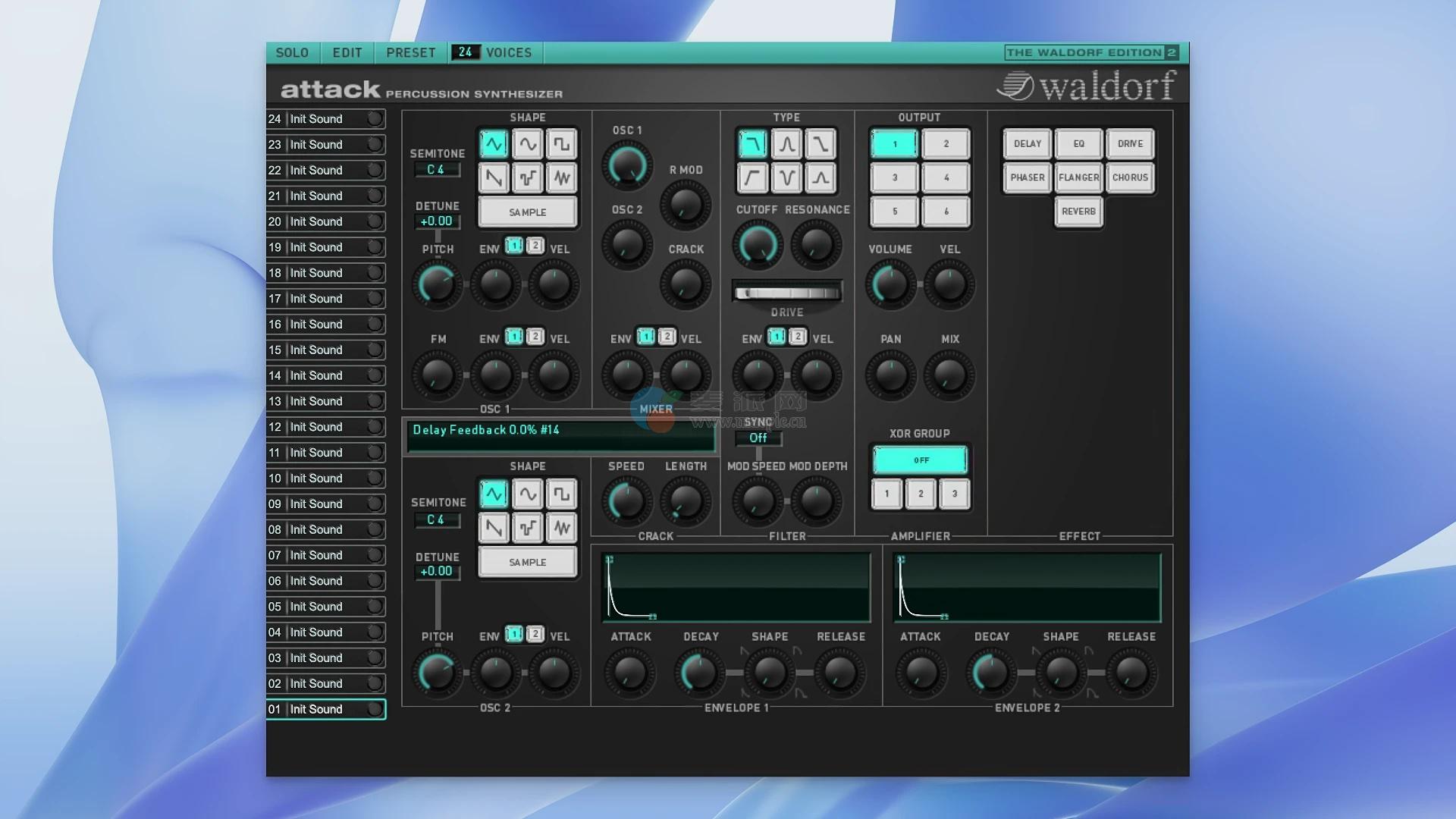 • 很明显,经典的Waldorf版本有了视觉上的改变,但它的核心价值仍然没有改变,没有受到挑战:鼓舞人心的软件工具的神圣三位一体!所有插件现在都有一个彻底改进的用户界面。除此之外,攻击现在包含一个特别扩展的效果部分,包括延迟、均衡器、驱动、相位器、镶边、合唱和混响。