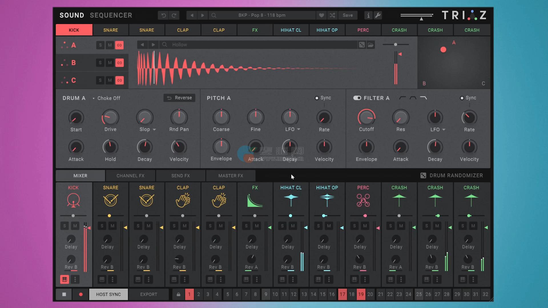 凭借闪电般的多节奏排序、先进的鼓分层、动态混音工具和智能随机化,Triaz重新定义了鼓制作艺术。