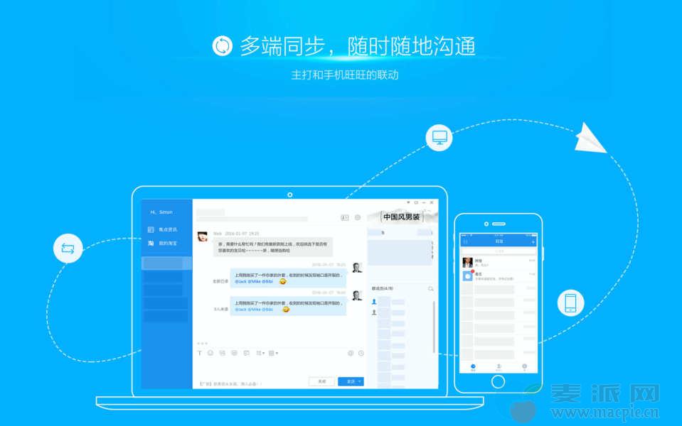 - 多端同步,随时随地沟通,主打和手机旺旺的联动。