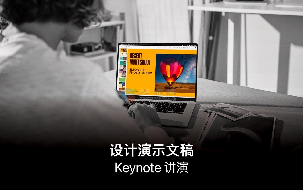 创建令人难忘的演示文稿。以Apple开发的的一个主题开始,然后添加文本、图像、图表和数字。