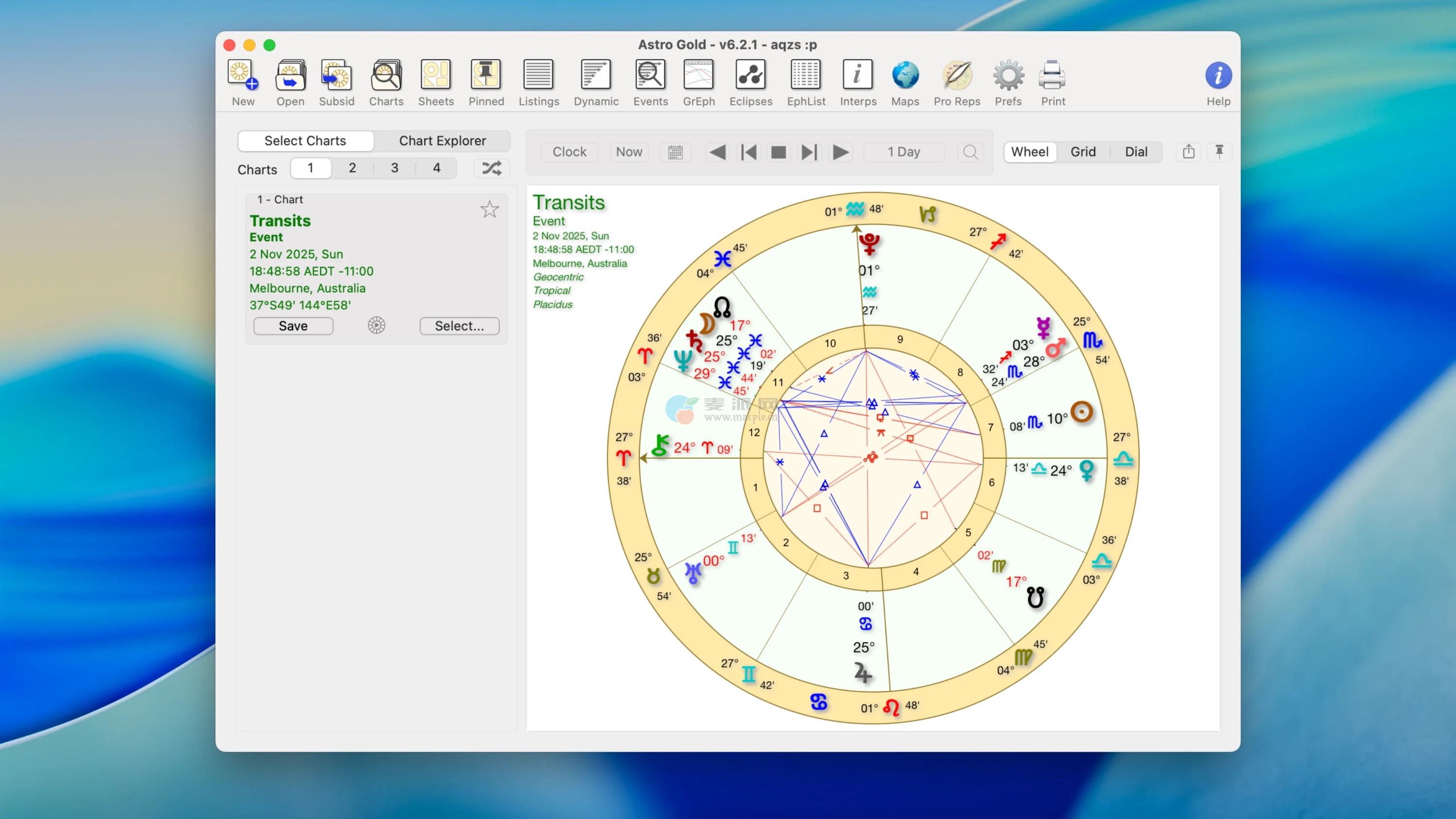 Astro Gold是一款占星软件,提供精确的占星计算、漂亮的图形和方便的互动,用于处理星盘、凌日、星宿和其他技术。