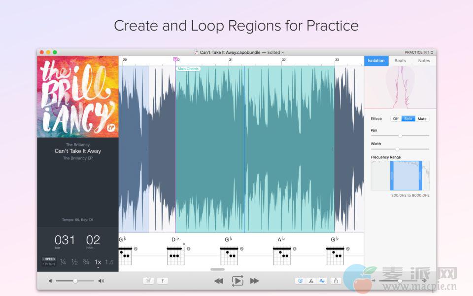 Capo 是一个帮助你学习表演你喜欢的歌的工具。它是使用原始唱片帮助学习表演iTunes曲库里音乐的革命性工具,它可以将音律减缓并显示细节频谱图让您通过仔细的聆听来学习。
