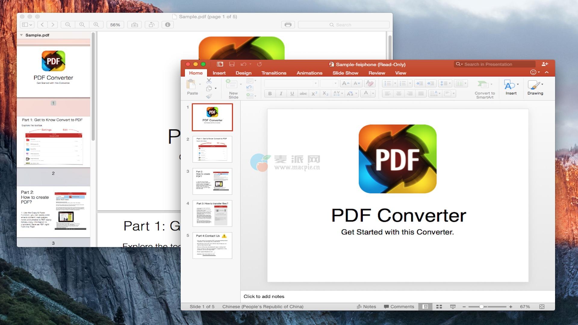 支持Microsoft PowerPoint for Mac 2003、2007、2010和最新的2016版本。
