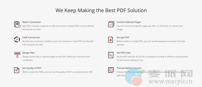 Cisdem PDFConverter Mac版是一款Mac平台的PDF格式转换工具,可以帮助我们将PDF格式的文件转换成Word, Text, Excel, ePub, Keynote等格式的文件。它支持超过全球49个国家的语言,包括中国。