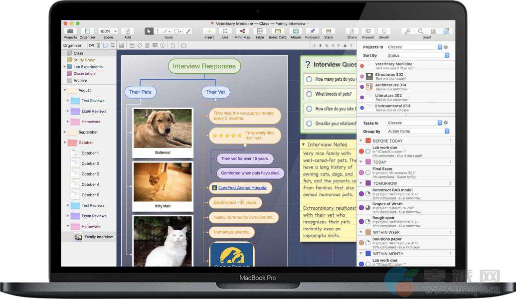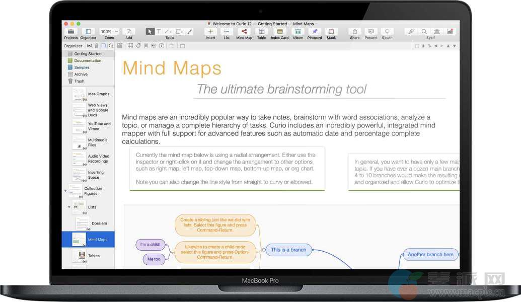 Curio 是一款Mac上专业强大的头脑风暴和项目管理工具,Curio可以让我们将所有的想法汇聚在同一个地方,支持插入多媒体文件,如图片、音乐、视频等,还可以录音、录像,除了具有头脑风暴、思维导图类软件的功能,同时还具有强大的项目管理功能,组织、搜索项目相关的文档,非常的强大。