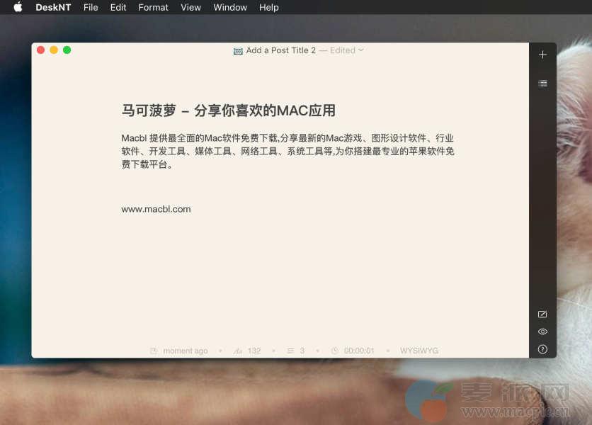 Desk NT 是一款Mac上优秀的文本写作工具,简单易用,专注于写作,支持导出为HTML, RTF, PDF, DOCX, TXT, MD!