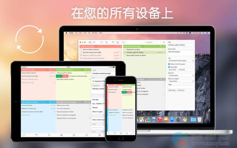 - 与日历应用无缝集成(同步任务、到期日与提醒日期)集成Be Focused*:同步任务与状态,可以在《Focus Matrix》后直接在《Be Focused》中开始计时