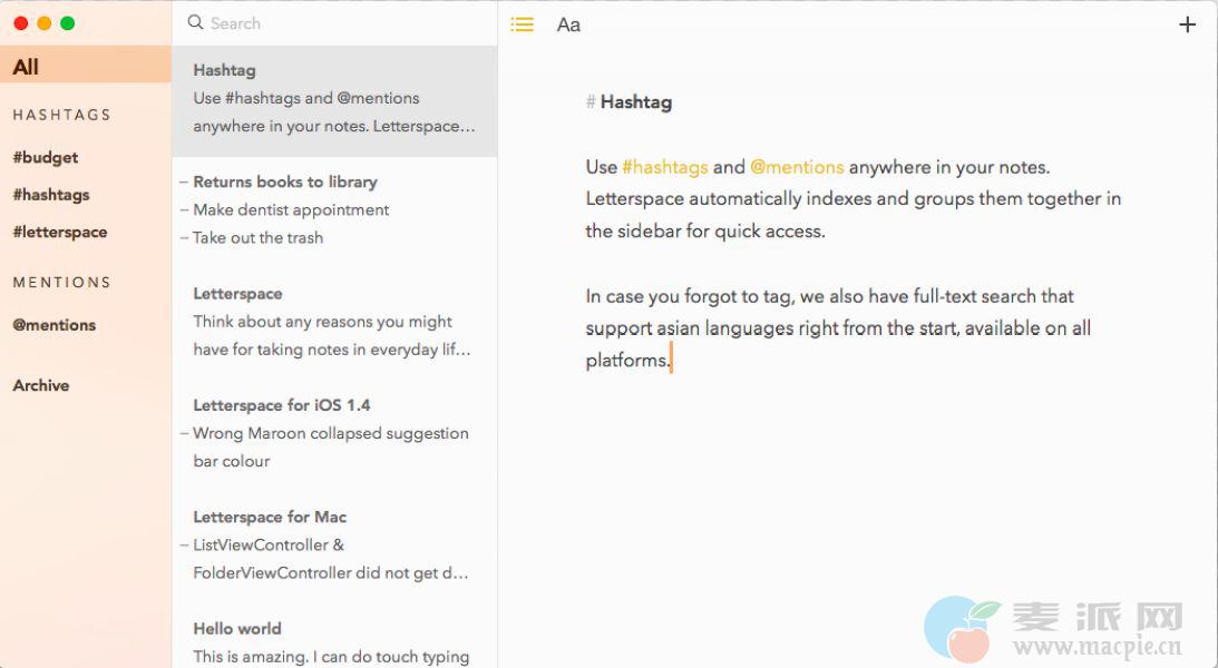 Letterspace是一个多平台的云同步笔记应用程序,轻松组织笔记,甚至可用Letterspace创建待办事项列表。