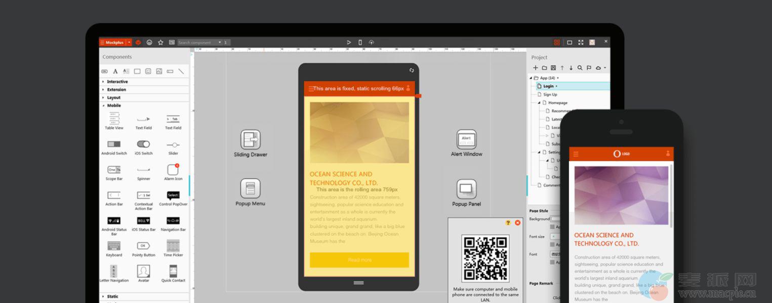 扫描二维码,原型即可在手机中演示。同时支持在线发布为HTML,发送一个网址即可分享给同事或客户,也可离线导出HTML。
