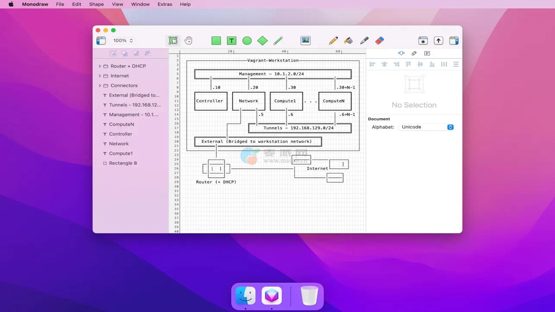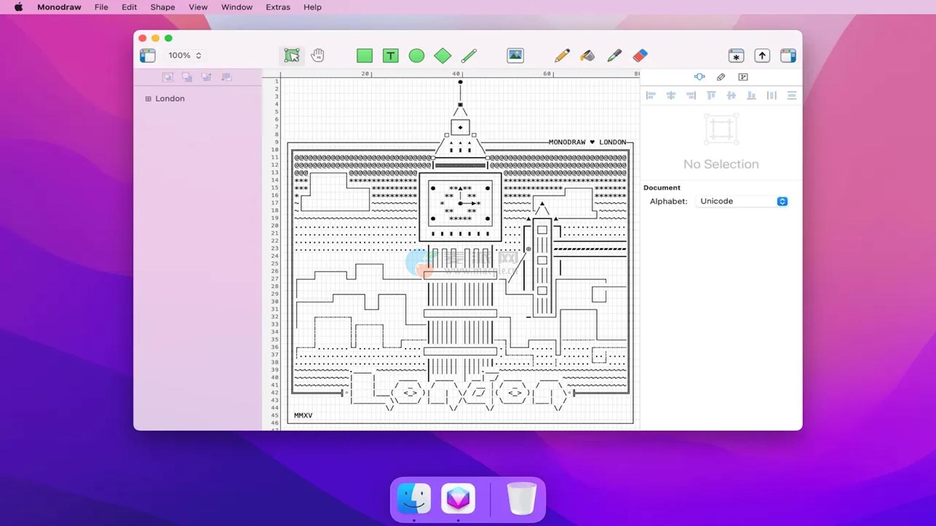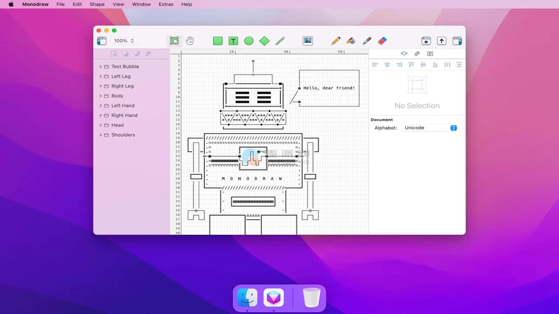 • Monodraw可以很容易地从文本(图表、布局、框图)和可视化算法、二进制格式的数据结构等创建图像。因为它只是一个文本,它可以很容易地建立太晚。以图像形式导出(PNG和SVG)。
