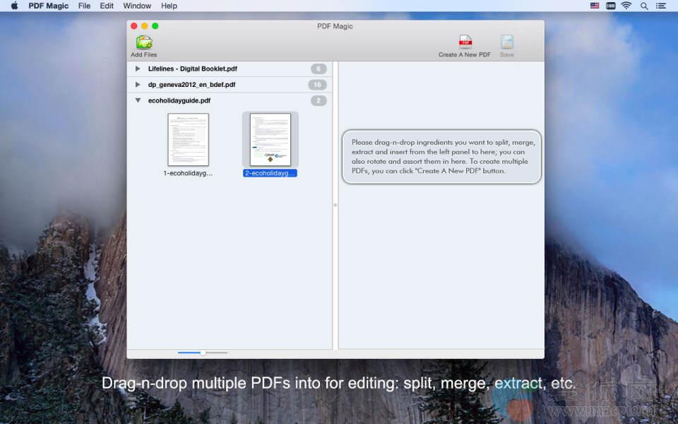 PDF Magic Mac版是一款Mac平台的多功能PDF处理工具,具备PDF文件合并、PDF文件分割、PDF文件旋转、PDF文件插入、PDF文件内容重新排序以及PDF文件页面旋转等多种pdf编辑处理功能,而且支持拖拽操作,绝对能够成为你的办公好帮手。