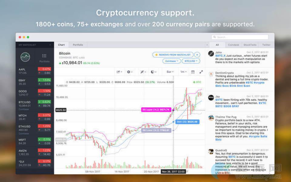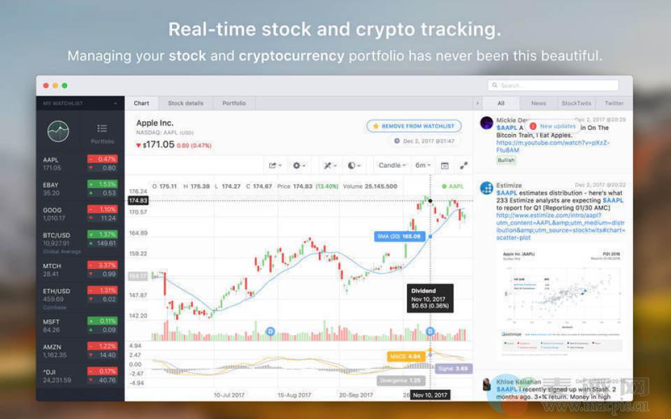 Stockfolio是一个MAC OS投资应用程序,专为Mac用户打造的实时股票行情软件,将有助于提高您的投资回报。帮助您研究和跟踪有趣的股票和加密货币。