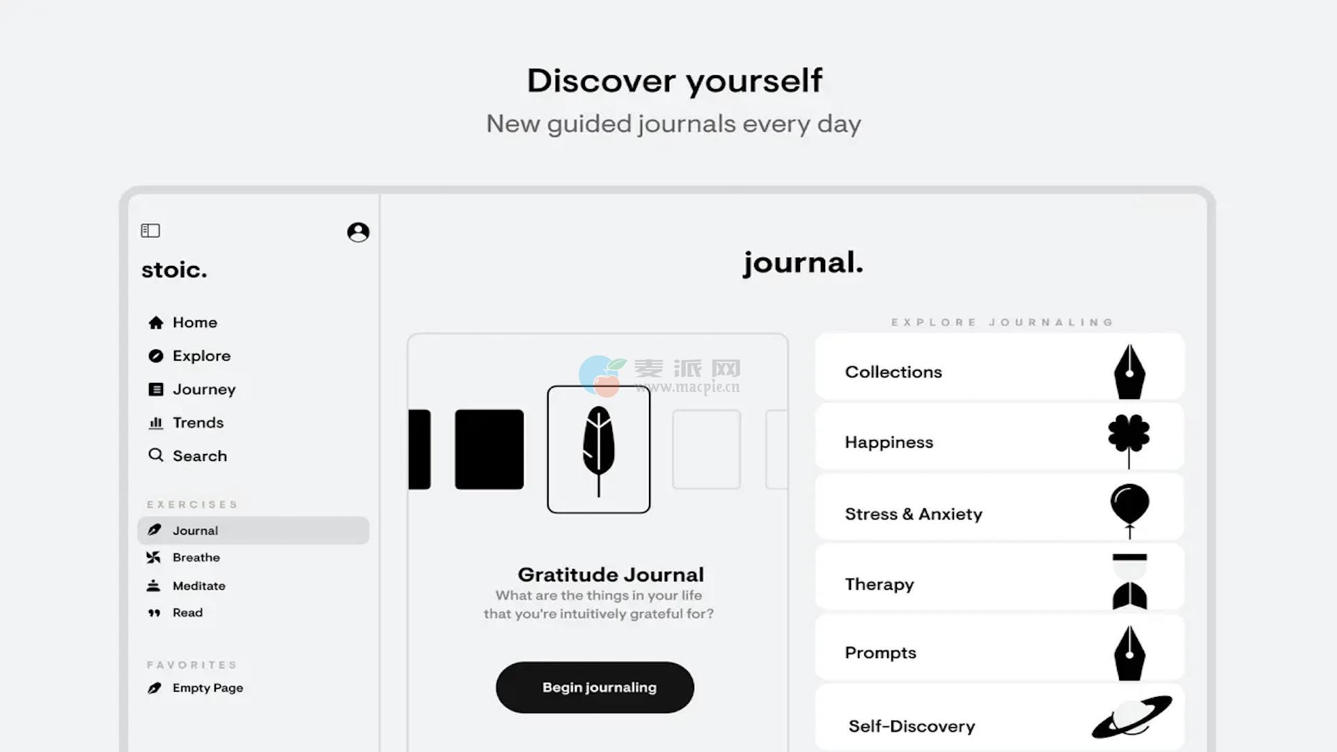 引导式日记:如果你不知道该写什么,这款应用程序会提供每周都在变化的引导性问题和鼓舞人心的主题。这有助于开始内省的过程。