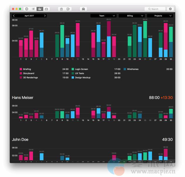 Tyme简单干净的界面,丰富多彩的统计和报告使时间跟踪不仅痛苦少,而且更有趣。